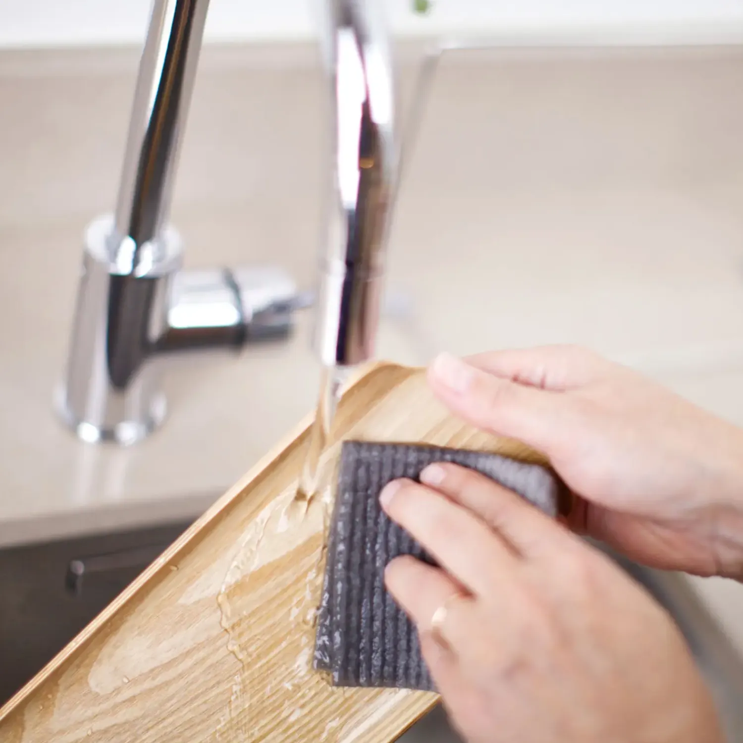 Med Bosigns LEAF opvaskestativ kan du samle opvaskemiddel, sæbedispenser, opvaskeklud og andre detaljer let tilgængelige på ét og samme sted ved køkkenvasken. Bosigns stilrene træbakke i vandfast træ er designet til at modstå det hårde miljø omkring køkkenvasken. Selvom den er lavet af træ, tåler bakken spild af f.eks. sæbe, opvaskemiddel og vand.