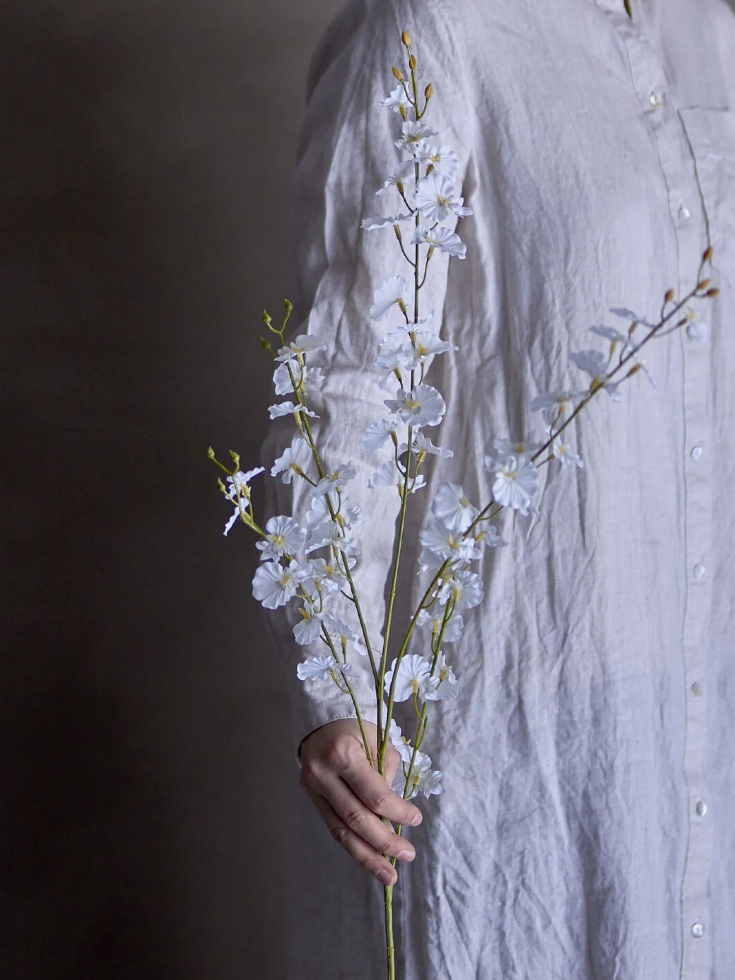 Denne kunstige orkidé-stilk fra Bloomingville kombinerer holdbarhed med tidløst design. Fremstillet af PE, jern og polyester sikrer materialevalget lang levetid uden behov for vedligeholdelse, med en højde på 91,5 cm og en diameter på 15 cm.