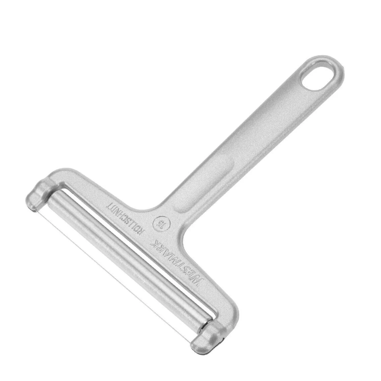 Westmark – Osteskærer – Rollschnitt udmærker sig ved sin evne til at tilpasse skivetykkelsen. Ved at ændre vinklen på skæreren kan du nemt justere tykkelsen på dine osteskiver, hvilket giver dig mulighed for at variere din osteanretning. Det forlængede håndtag med ophængningshul gør opbevaring nem og praktisk, mens de kompakte mål på 139 x 109 x 10 mm sikrer, at den passer godt ind i de fleste køkkenskuffer.