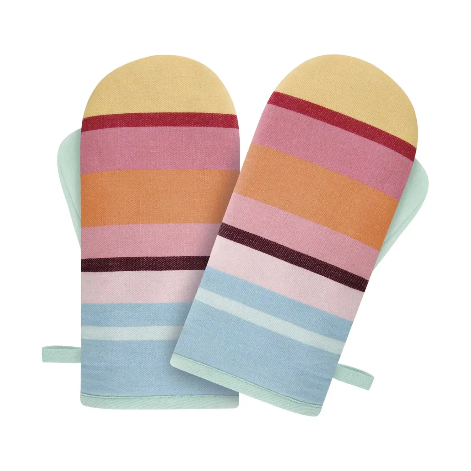 Med dette sæt af 2 ovnhandsker er du godt rustet til at håndtere varme fade og gryder i køkkenet. De sikrer, at du undgår at brænde dine hænder, mens du laver mad eller bager lækre retter.