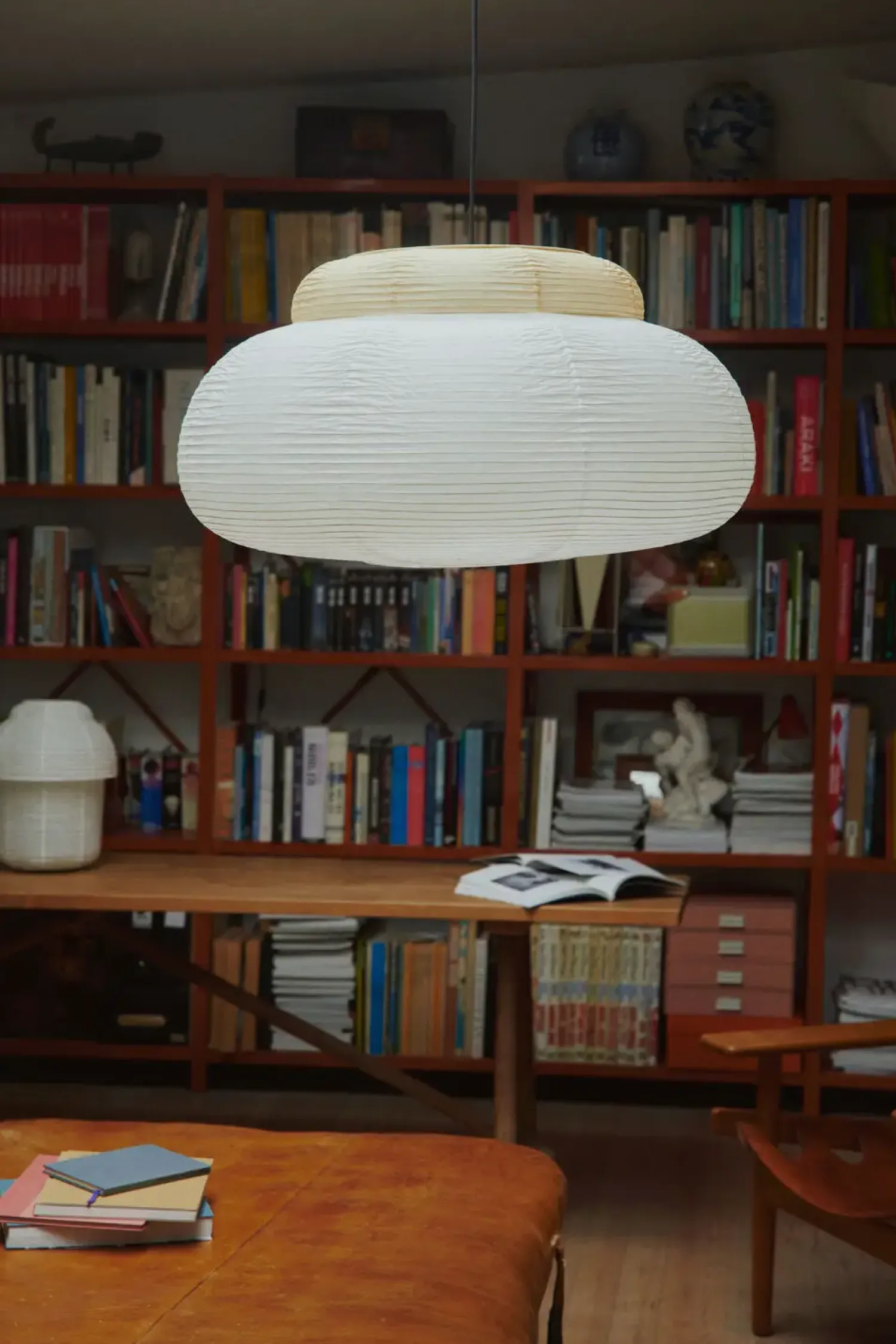 Med sin diameter på 80 cm bliver lampen et naturligt midtpunkt i rummet. Rispapiret sikrer, at lyset fordeles blødt og ensartet. Dette reducerer skarpe skygger og blænding, hvilket kan være særligt nyttigt i arbejdsområder eller læsehjørner. Lampens størrelse gør den også velegnet til effektivt at oplyse større arealer.