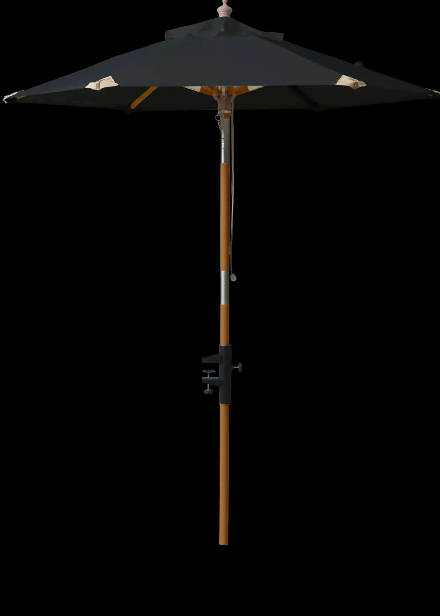 Cinas – Parasol (balkon) Ø1,8 m Sort polyester dug er en praktisk løsning til udendørs områder. Denne parasol har en række funktioner, der kan være nyttige på en balkon eller terrasse.