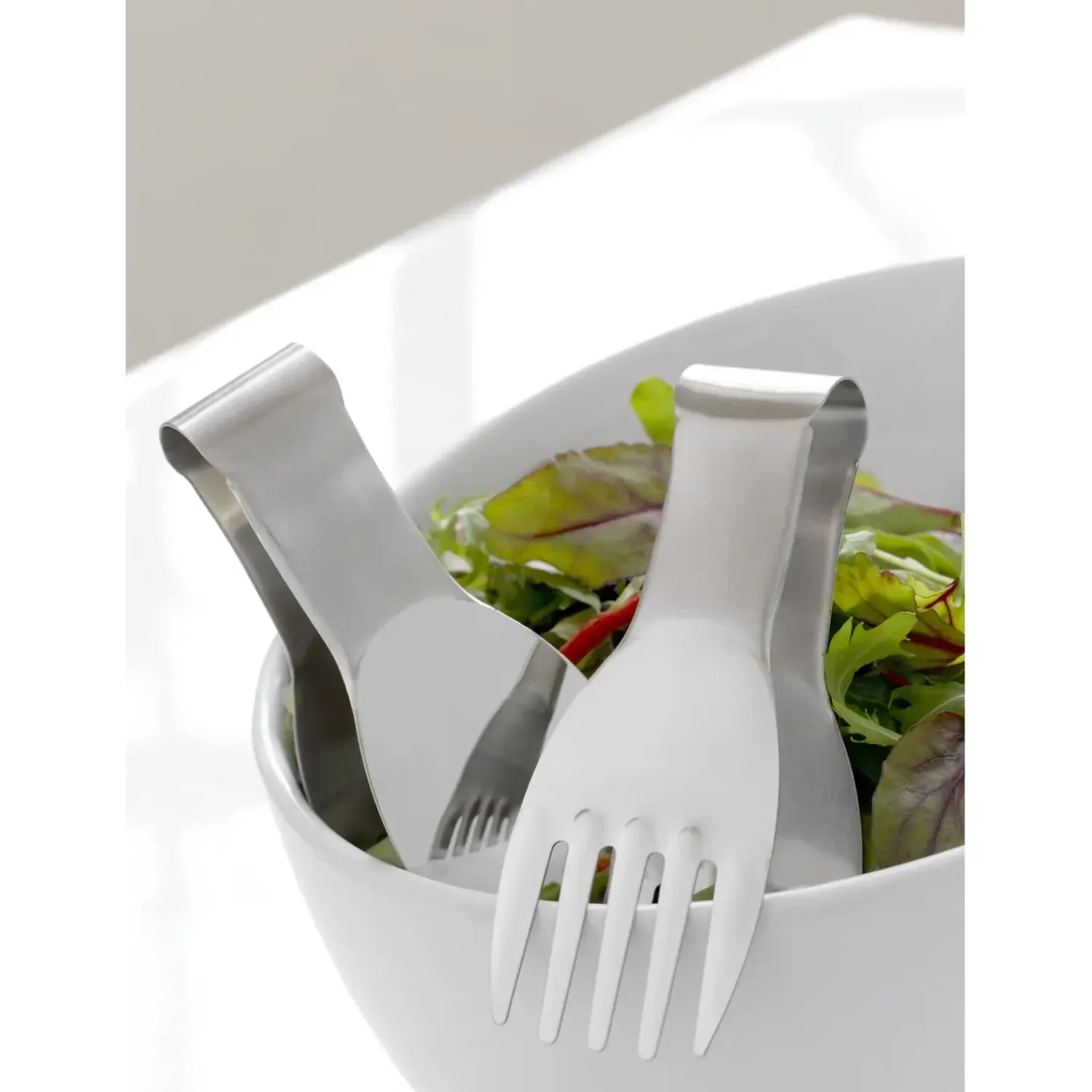 Gaflen og skeen er nøje afstemt til hinanden, så du kan servere både lette og tunge salatingredienser uden besvær. Det minimalistiske design sikrer, at bestikket passer naturligt ind i enhver bordopdækning, uanset om det er til hverdag eller fest.