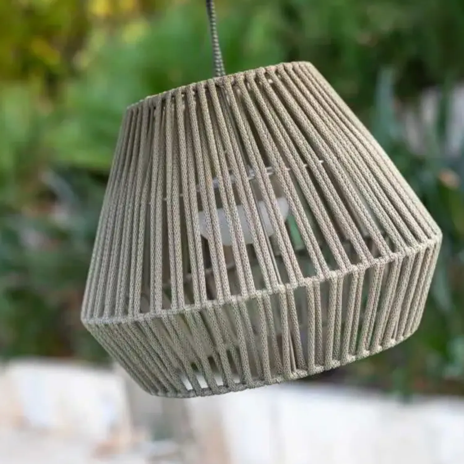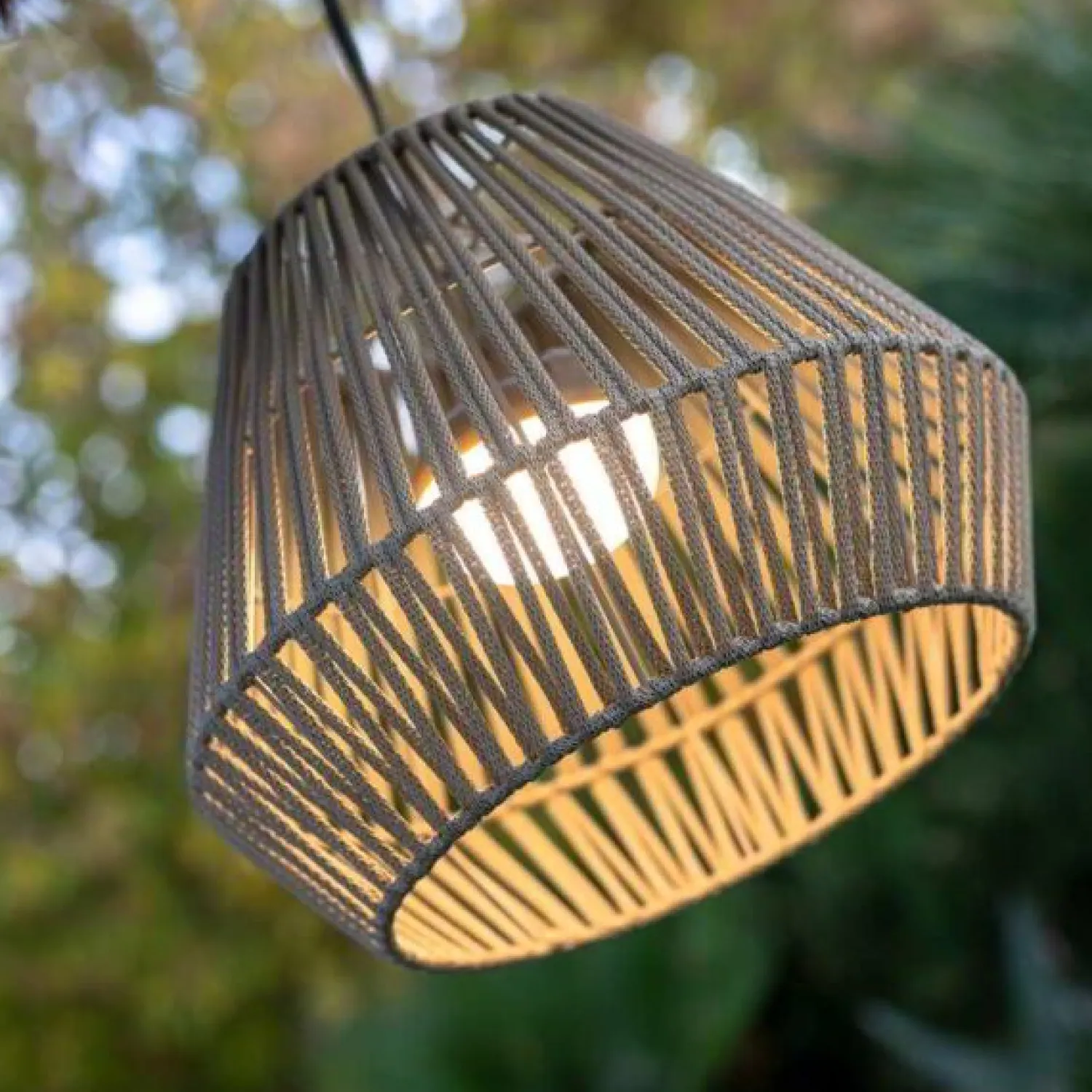 Denne havelampe har et geometrisk design med parallelle stænger. Lampen spreder lys gennem den åbne konstruktion og er velegnet til terrassen eller altanen.
