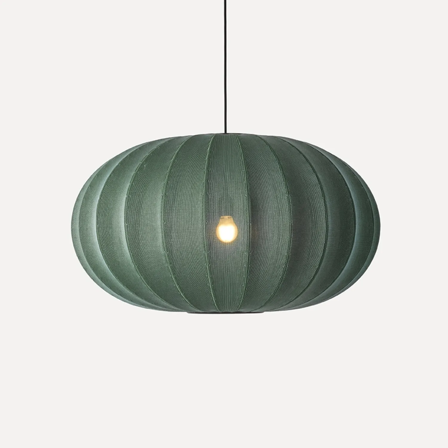 Denne pendel fra Made by Hand kombinerer dansk håndværk med LED-teknologi. Den ovale form er skabt i København af 3D-strikket genanvendt polyester, hvilket giver et interessant lysspil gennem materialet.