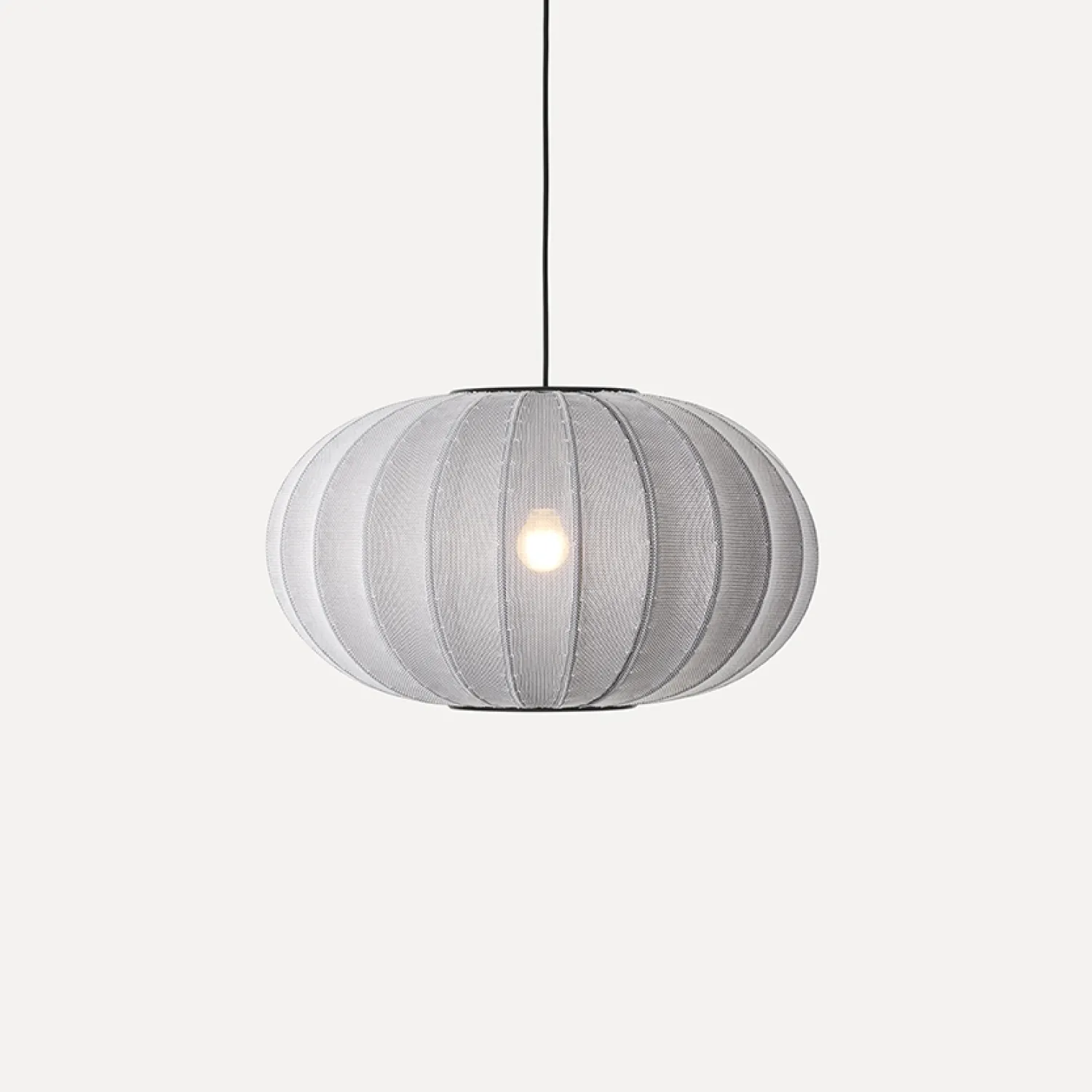 Produktion i Danmark sikrer omhyggelig udførelse. Lampeskærmen er fremstillet af brandhæmmende, genanvendt polyester, der er 3D-strikket for at opnå den specifikke form og sikre holdbarhed over tid.