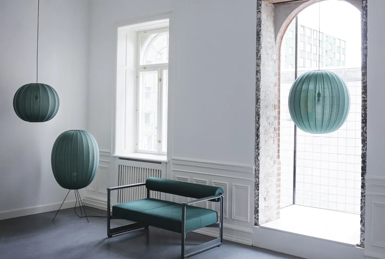 ISKOS-BERLIN har skabt en lampe, der forener håndværk og moderne design. Den tweedgrønne farve og den strikkede tekstur tilfører et naturligt element til din indretning, mens formen sikrer god lysspredning.
