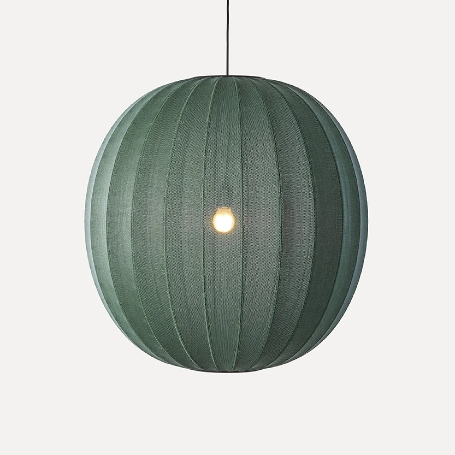 Dansk produktion giver god kvalitetskontrol og service. Den mørkegrønne farve og den strikkede overflade giver lampen et roligt udtryk. Den flammehæmmende polyester gør, at lampen kan anvendes i både private og offentlige rum.