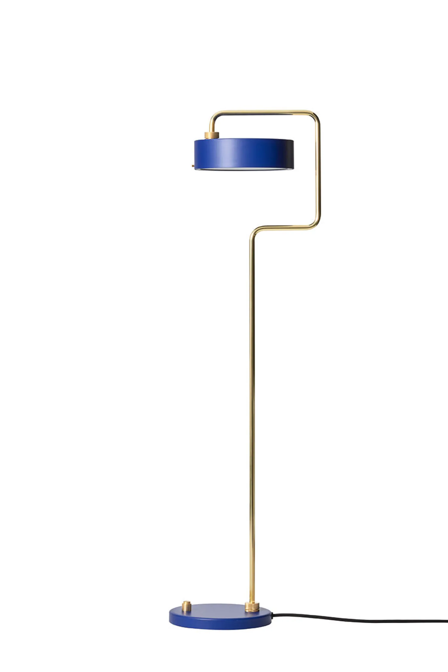 Denne danske gulvlampe kombinerer stål og messing i et design, der forener håndværk med funktionalitet. Den royalblå farve giver dit rum et karakteristisk udtryk.