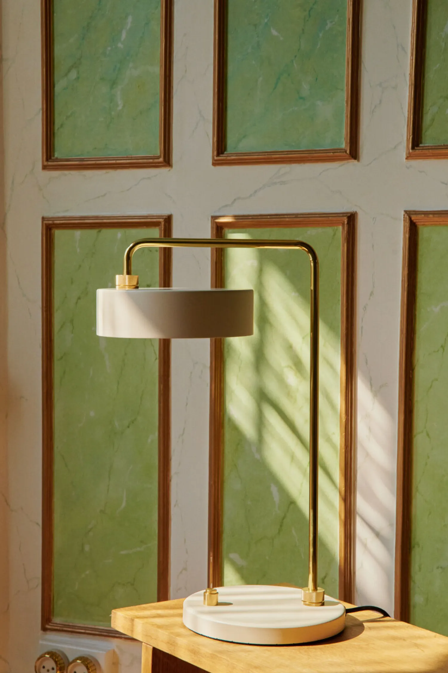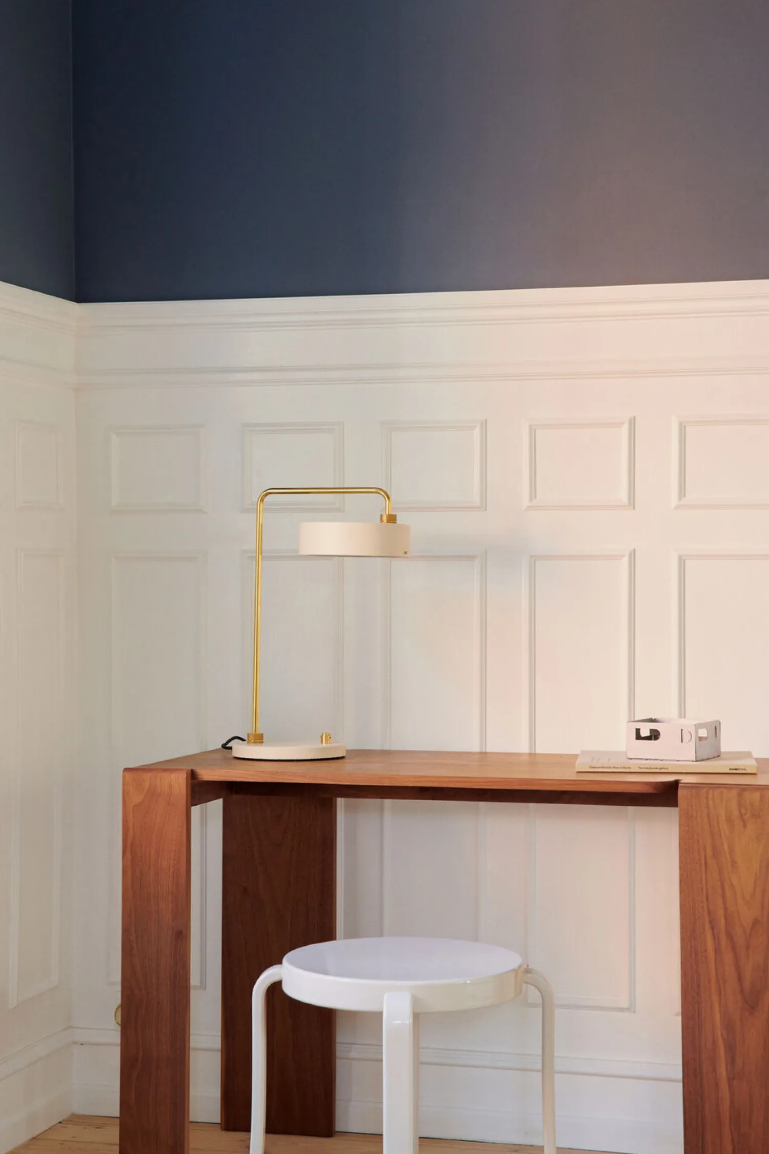Inspireret af 1930’erne og 1950’erne imødekommer lampen nutidens behov for funktionel belysning. Base og skærm arbejder sammen om at give dig præcis den lysmængde, du har brug for ved skrivebordet eller sofabordet.
