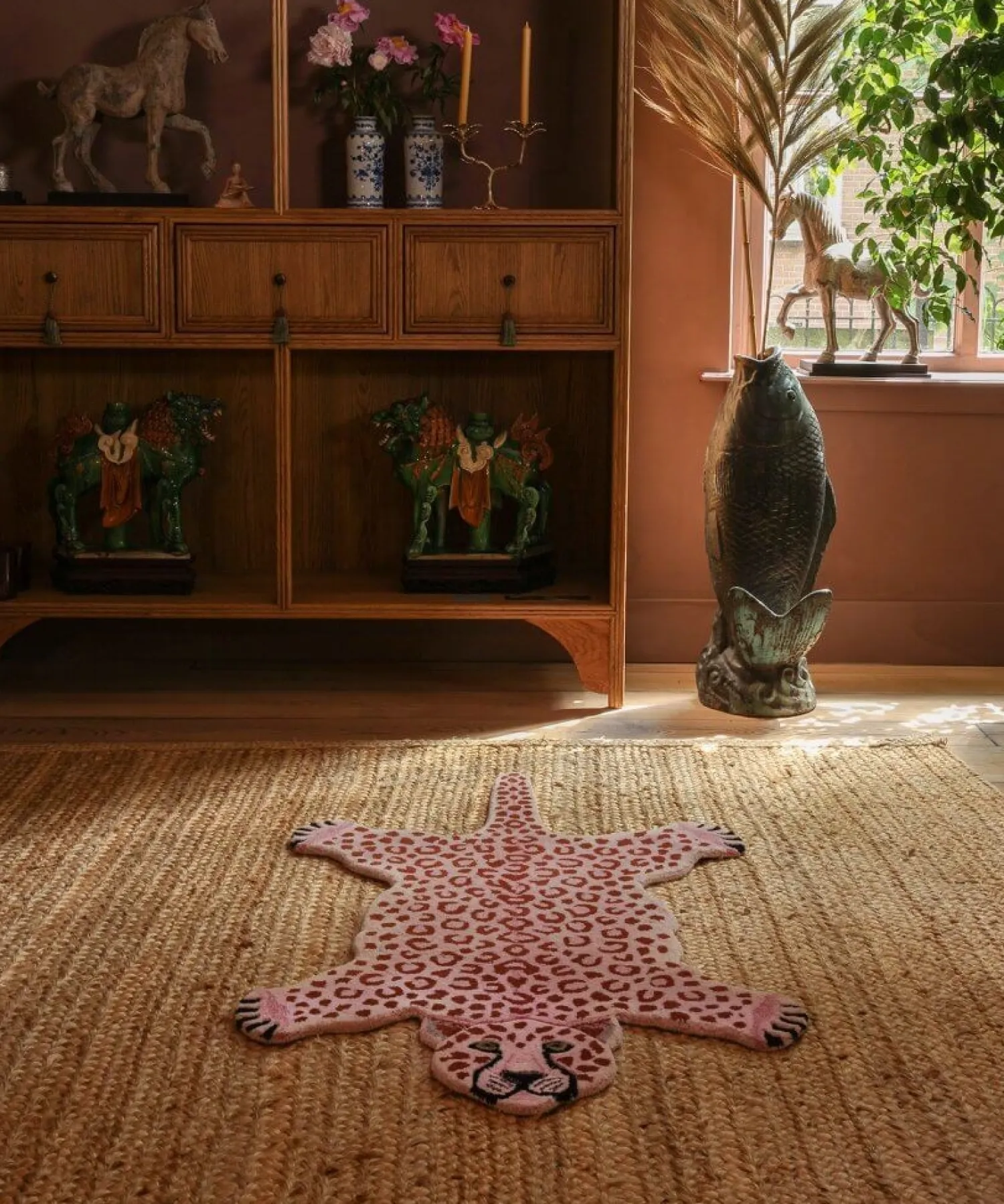Super fint og sødt Pink Leopard gulvtæppe fra Doing Goods. Tæppet er håndlavet af 100% uld, hvilket gør hvert enkelt tæppe helt unikt. Placer tæppet hvor som helst i hjemmet, brug det eksempel foran pejsen i stuen eller på gulvet i børneværelse. Tæppet kan også hænges op på væggen.