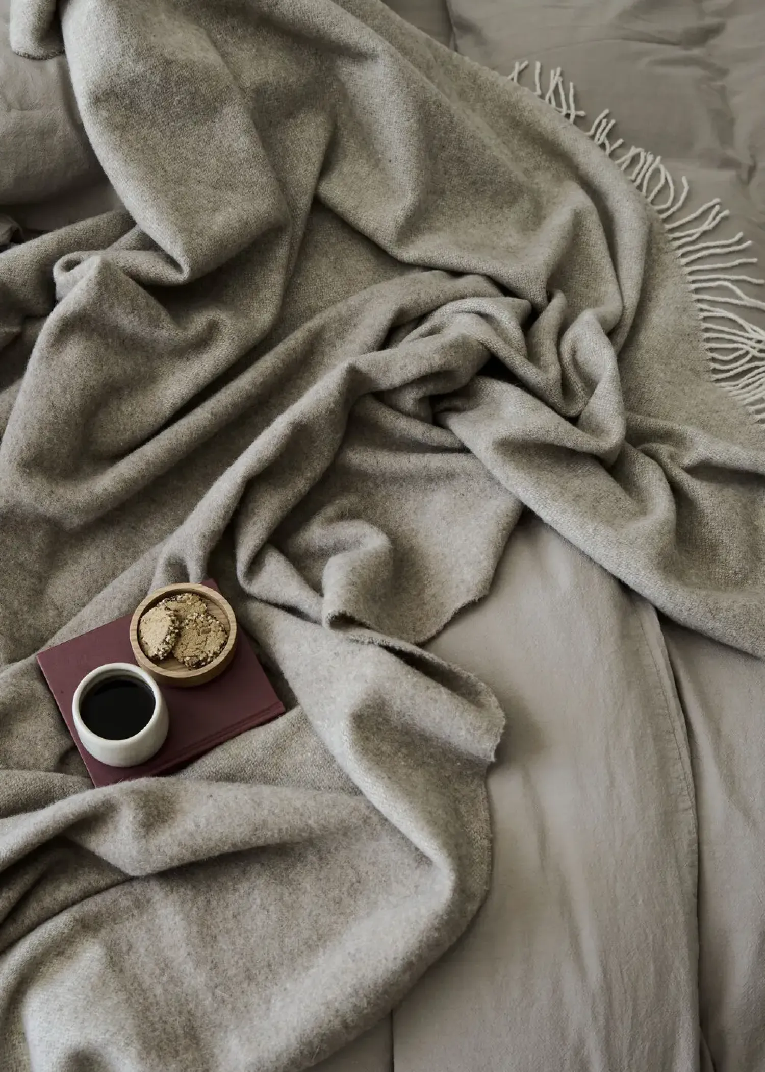 Stor luksuriøs merino uld plaid i enkelt, stilrent design. De smukke bølgende linjer på den elegante Waves plaid henter inspiration i den rå nordiske natur og skaber en unik balance til den bløde tekstur. En ny designklassiker som hurtigt bliver en favorit. Plaiden er vævet i et eksklusivt uldmix i sand nuancer. STANDARD 100 by OEKO-TEX® certificeret.
