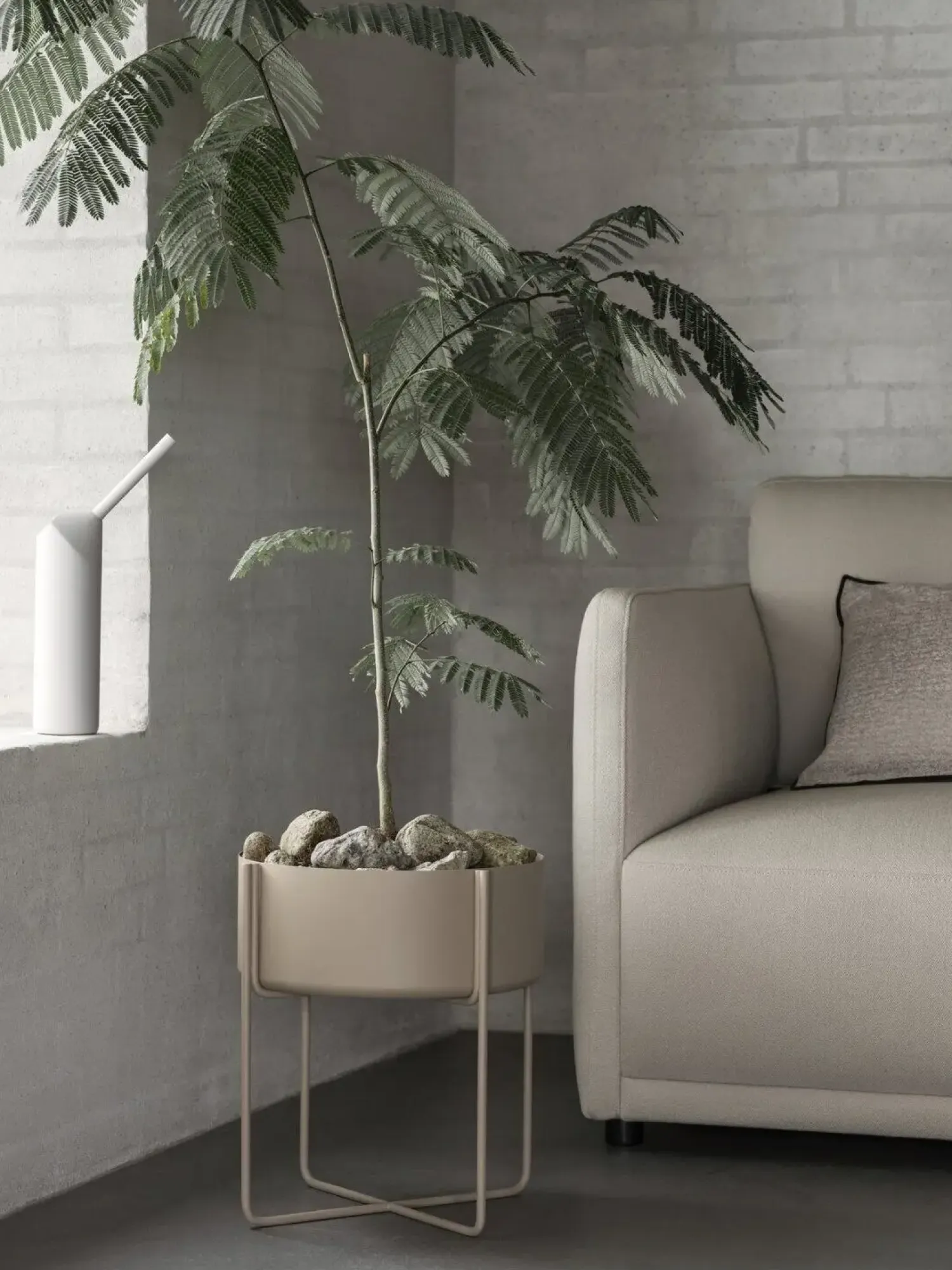 Gør dit hjem til en grøn oase! KENA-plantepotten med stativ bringer en levende, naturlig flair til dit hjem. Pottens varme sandbeige skaber en attraktiv kontrast til de blomster og planter, der vokser inde i den. KENA plantepotter er lavet af pulverlakeret stål. Plantekrukkerne fås i tre størrelser og farver, så de kan kombineres med forskellige planter efter lyst. Anvendelsesområde: Indendørs