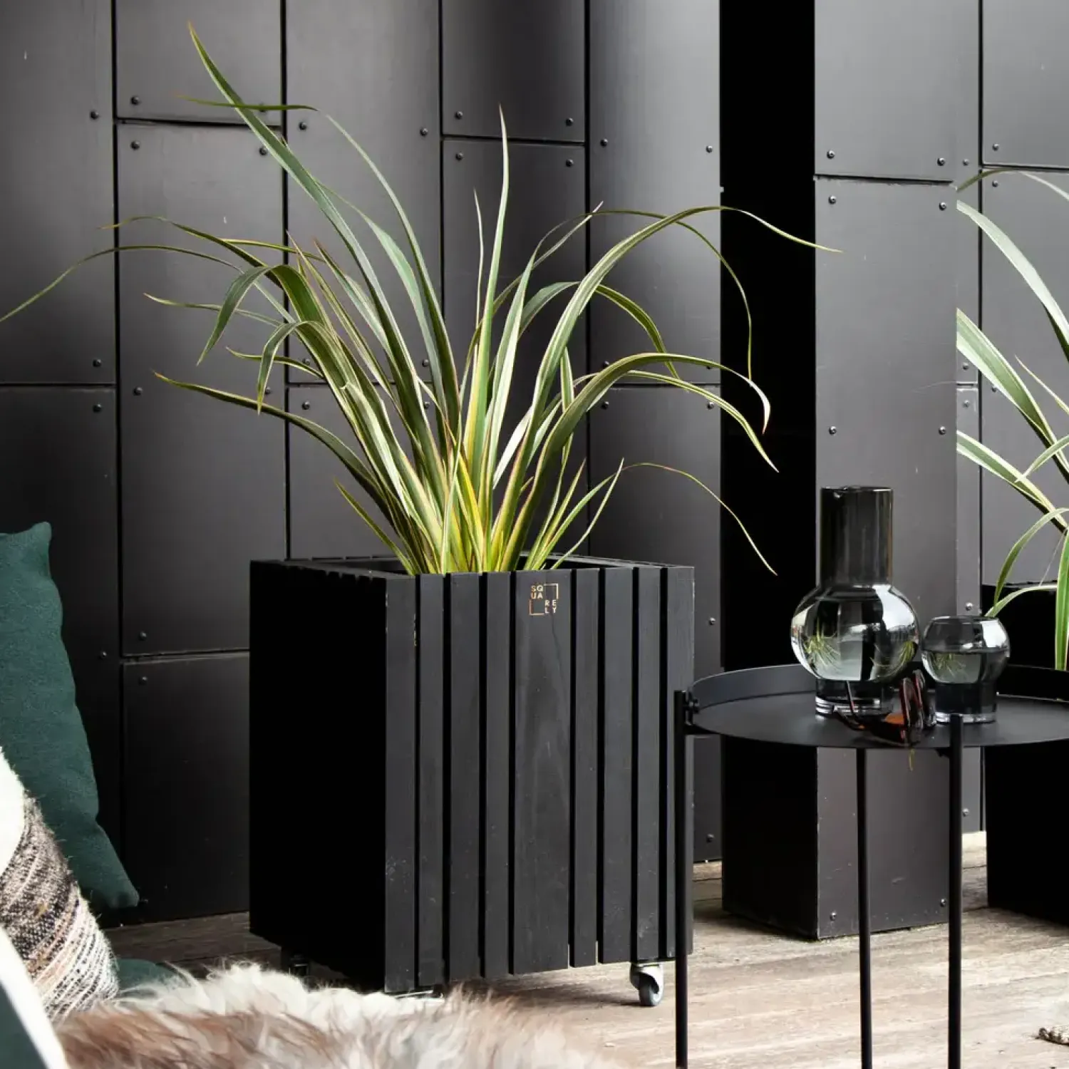Træet er behandlet, så det tåler vind og vejr. Du kan derfor bruge kassen både inde og ude, alt efter årstiden. Tilføj hjul for nem flytning ved rengøring eller ændring af indretningen. Kassen giver dig fleksibilitet i din plantepleje.