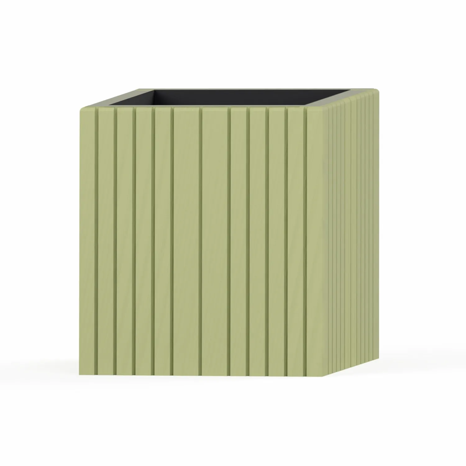 De vertikale lameller og den lysegrønne nuance skaber et tidssvarende udtryk, der passer til både terrassen og altanen. Den ergonomiske højde på 56 cm gør det behageligt at passe planterne, mens det integrerede Mona selvvandingssystem og afløbet sikrer optimal vanding uden oversvømmelse.
