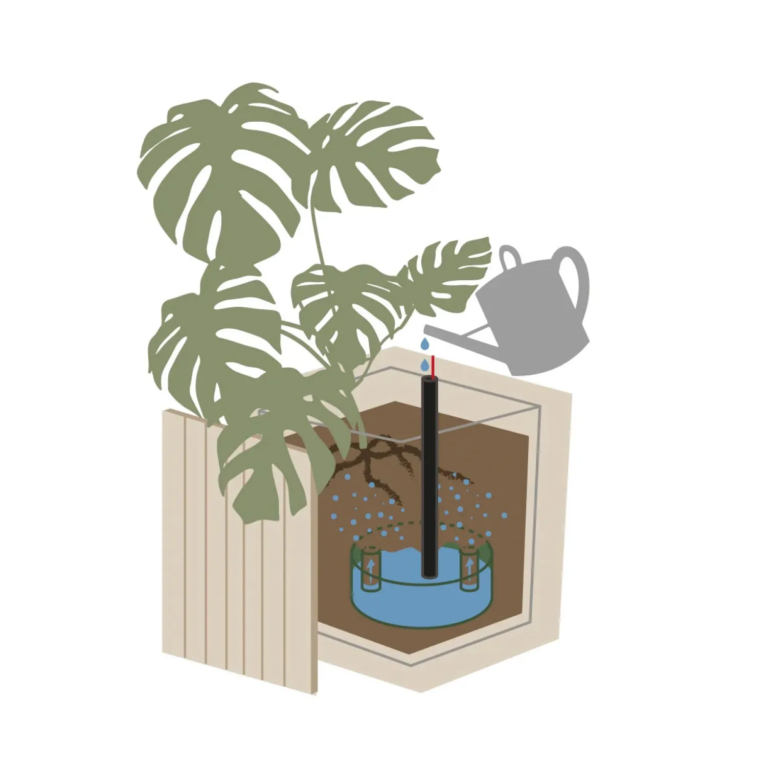 Vandingssystemet giver dine planter den rette mængde vand. Vandbeholderen mindsker behovet for daglig vanding, så du kan nyde dine planter uden konstant pasning.