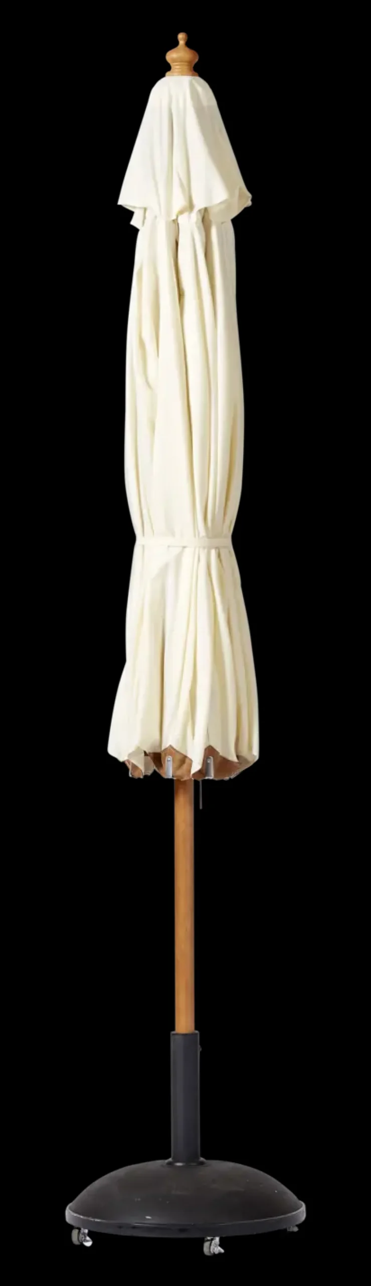 Cinas – Pomino Parasol Ø3,3m off-white olefin dug er en stor parasol designet til brug i haven eller på terrassen. Den tilbyder skygge og beskyttelse mod solen med sine omfattende specifikationer. Denne parasol er ideel til at skabe et behageligt udendørs miljø for familie og gæster.