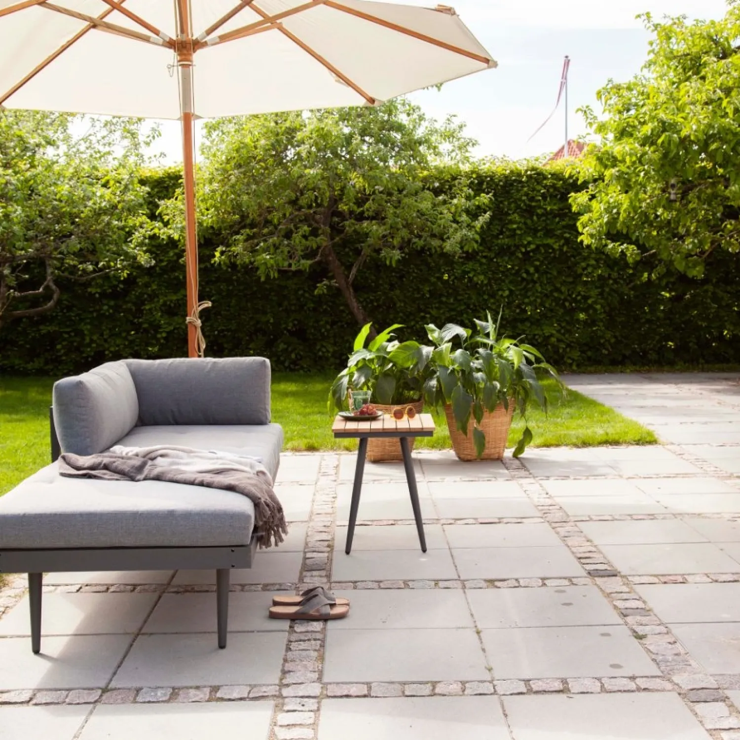 Cinas – Pomino Parasol er udstyret med en robust træstang for stabilitet. Parasollen har en dreje- og tiltfunktion, der giver mulighed for at justere skyggen efter behov. Denne fleksibilitet sikrer optimal beskyttelse mod solen hele dagen, uanset solens position. Den store diameter på 3,3 m giver rigelig skygge til både møbler og personer.