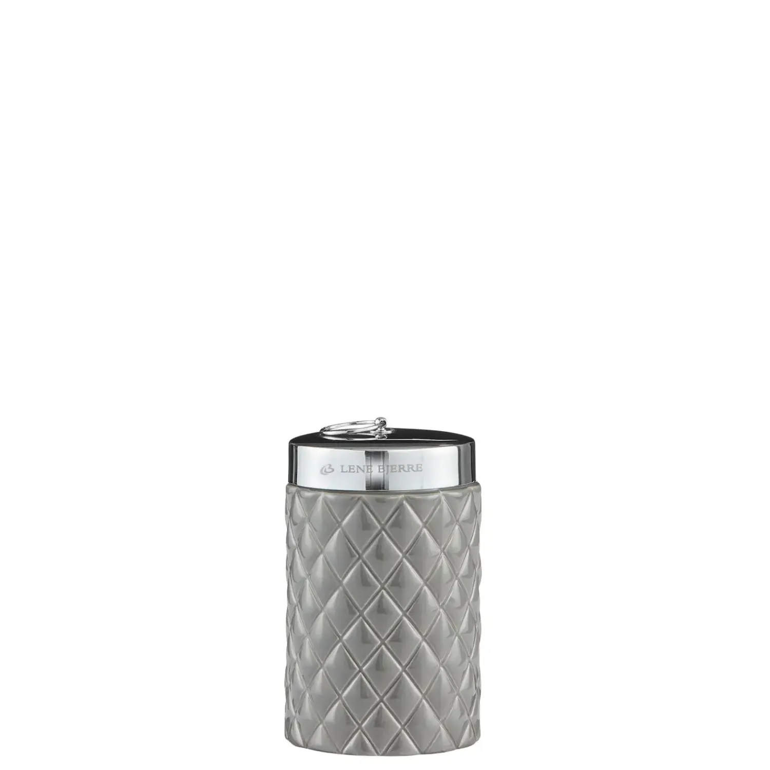 Eksklusiv grå keramik krukke med harlekin design og sølv låg fremstillet af . Denne Portia krukke måler H14xØ9 cm. og er perfekt til opbevaring af småting på badeværelset, hvor den både vil være praktisk og dekorativ på én og samme tid. Brug den eventuelt til smykker, vatpinde, vatrondeller eller til lige hvad du har lyst til.
