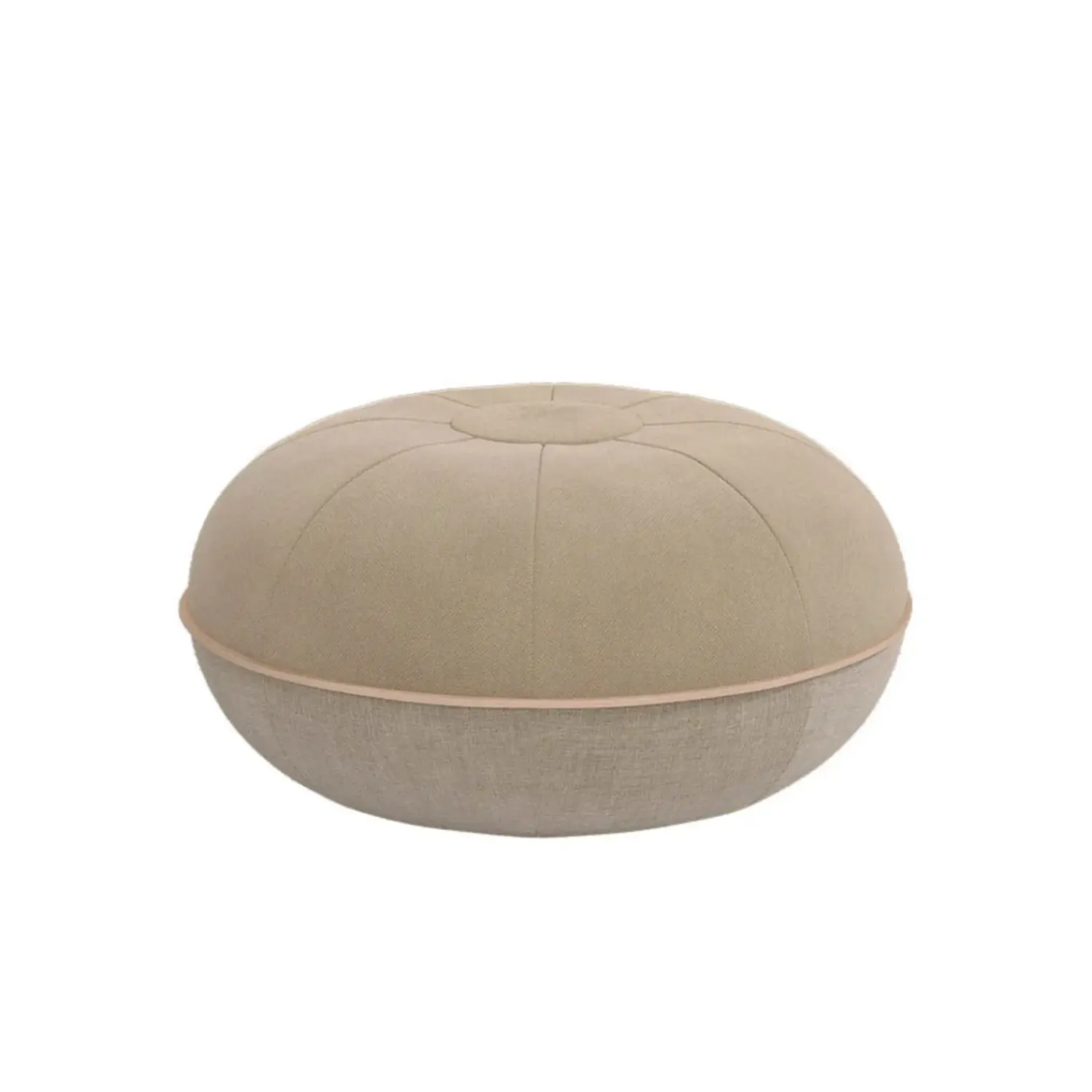 Ulden og linningen skaber en naturlig tekstur, mens læderkanten tilføjer struktur og forlænger puffens levetid. De synlige syninger på toppen er ikke kun dekorative – de holder fyldet på plads og sikrer, at formen bevares over tid. Materialerne arbejder sammen om at give dig en puf, der holder.