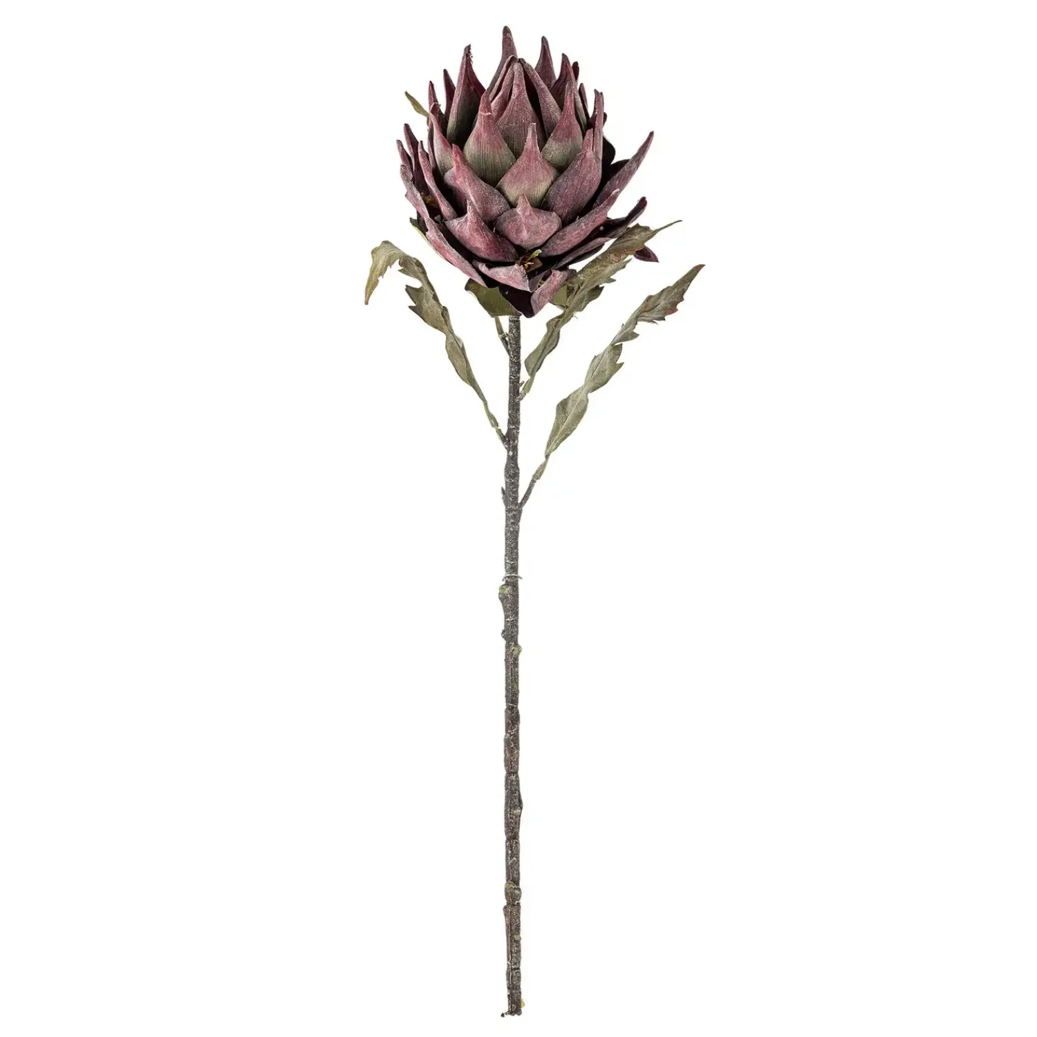 Denne kunstige Protea-stilk fra Bloomingville måler D20 x H76 cm og giver dig mulighed for at nyde blomstens karakteristiske form året rundt. De dybe lilla kronblade og grønne blade skaber en naturtro gengivelse af den ikoniske blomst.