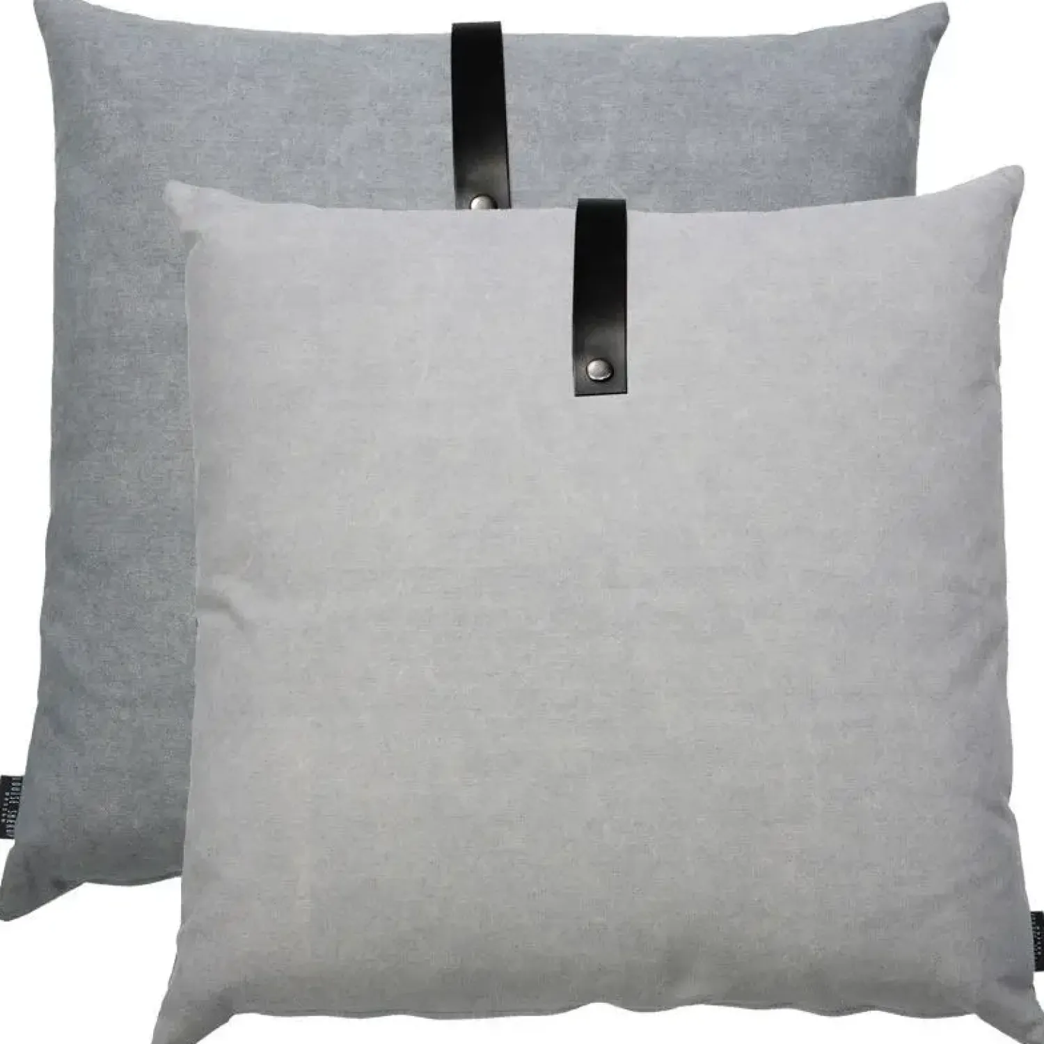 Denne pude er designet med 2 forskellige farver stof. På den ene side er der en lys grå, og på den anden side er der en mørkere grå farve.