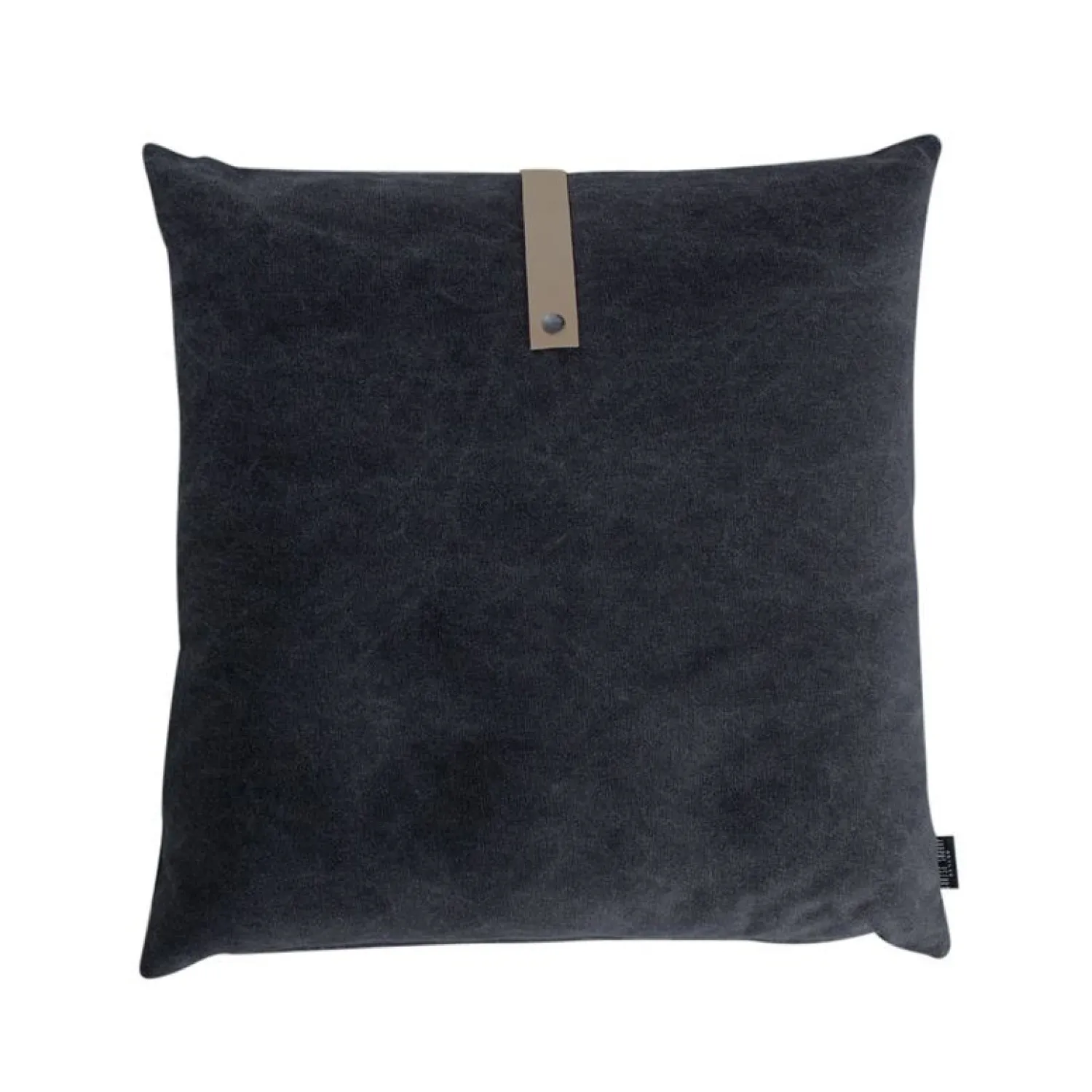 Denne pude er designet med 2 forskellige farver stof. På den ene side er der en lys grå, og på den anden side er der en mørkere grå farve.