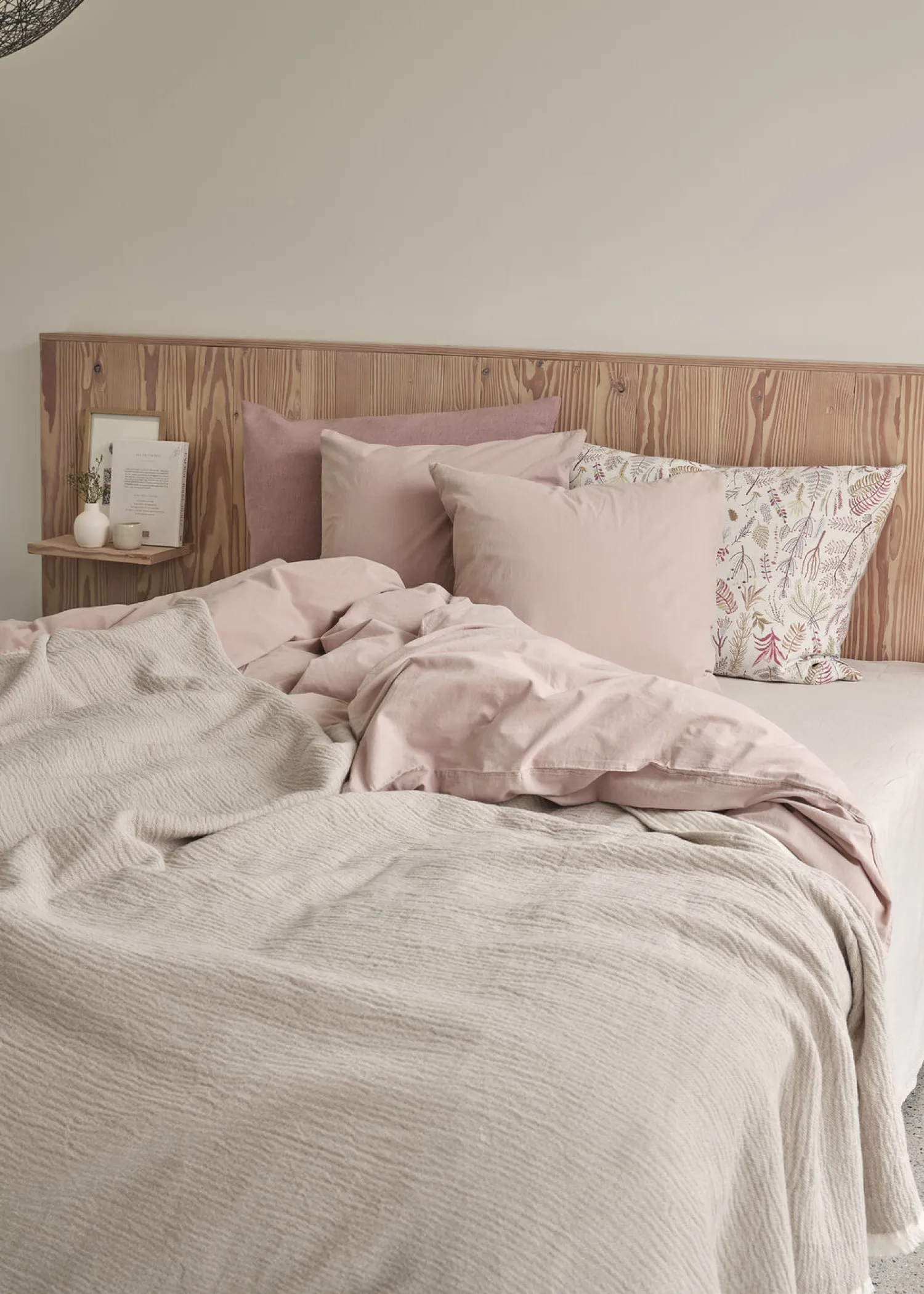 Som en eng af smukke blomster præger det fineste, poetiske jaquard vævede mønster Botanica gavlpudens ene side og skaber et charmerende og roligt udtryk. Den anden side er ensfarvet i lækker hør/viscose mix.