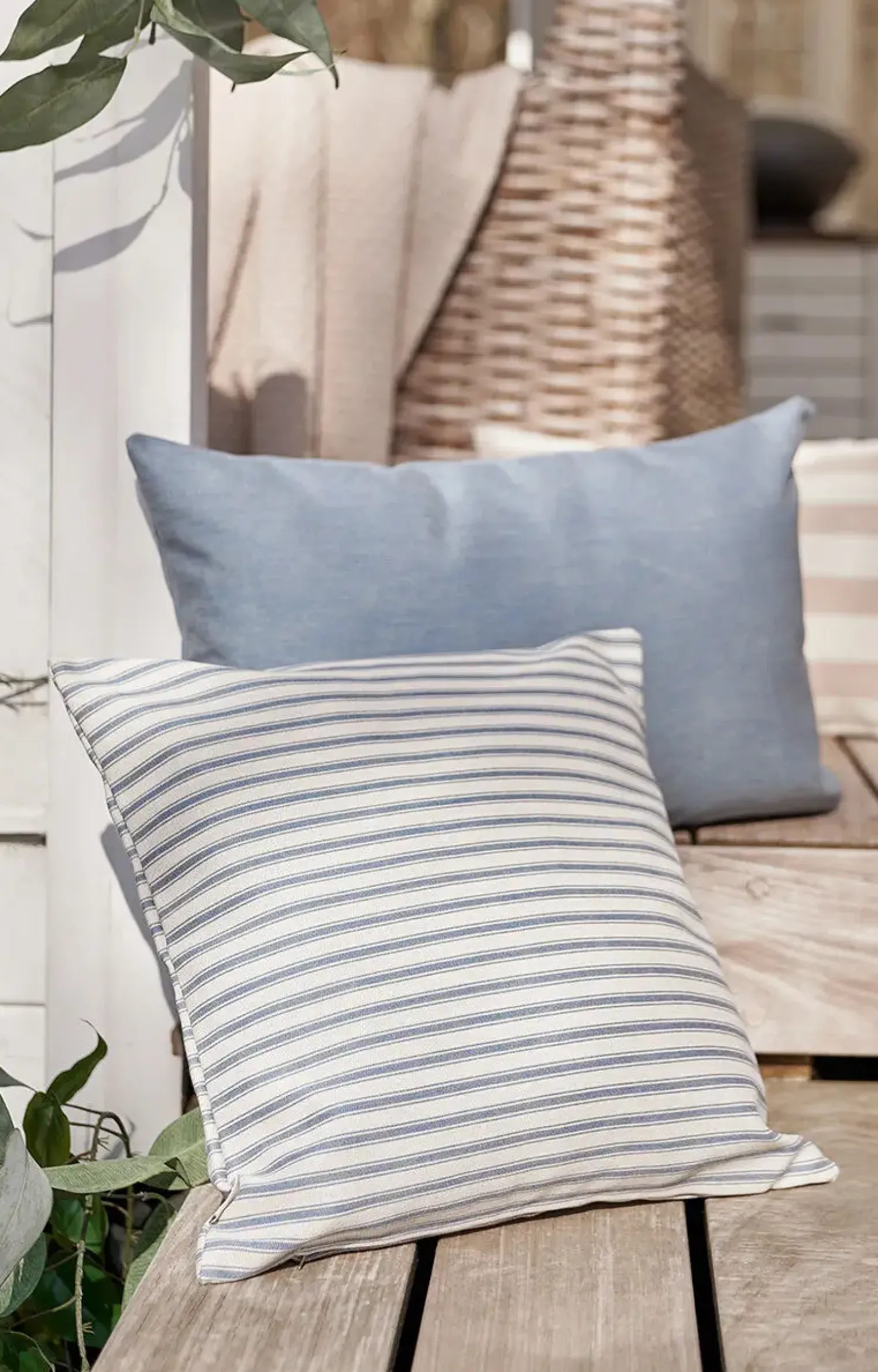 Trendy udendørspude med striber i en støvet blå. Match med puderne Outdoor Basic og Outdoor Stripe, og skab den skønneste oase i haven og på terrassen. Outdoor Fine Stripe er lavet i special stof, som er vandafvisende og tåler solens stråler. Perfekt og let at tage med, når du skal nyde en god dag på stranden.