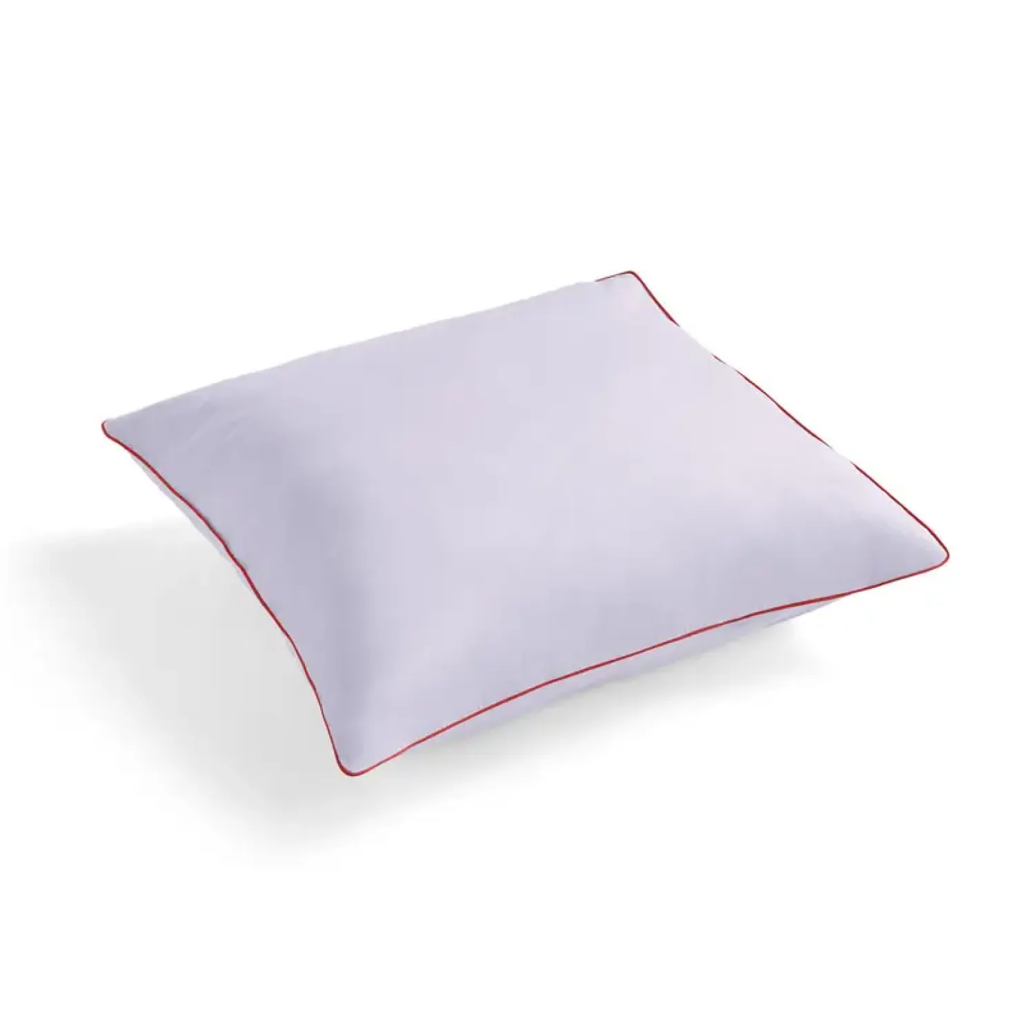 Dette pudebetræk fra Hay kombinerer høj trådtæthed med Oeko-Tex-certificeret bomuld. Det giver en blød og behagelig overflade, der holder sig vask efter vask. Røde kontrastkanter tilfører et diskret designelement til den rolige lavendelnuance.