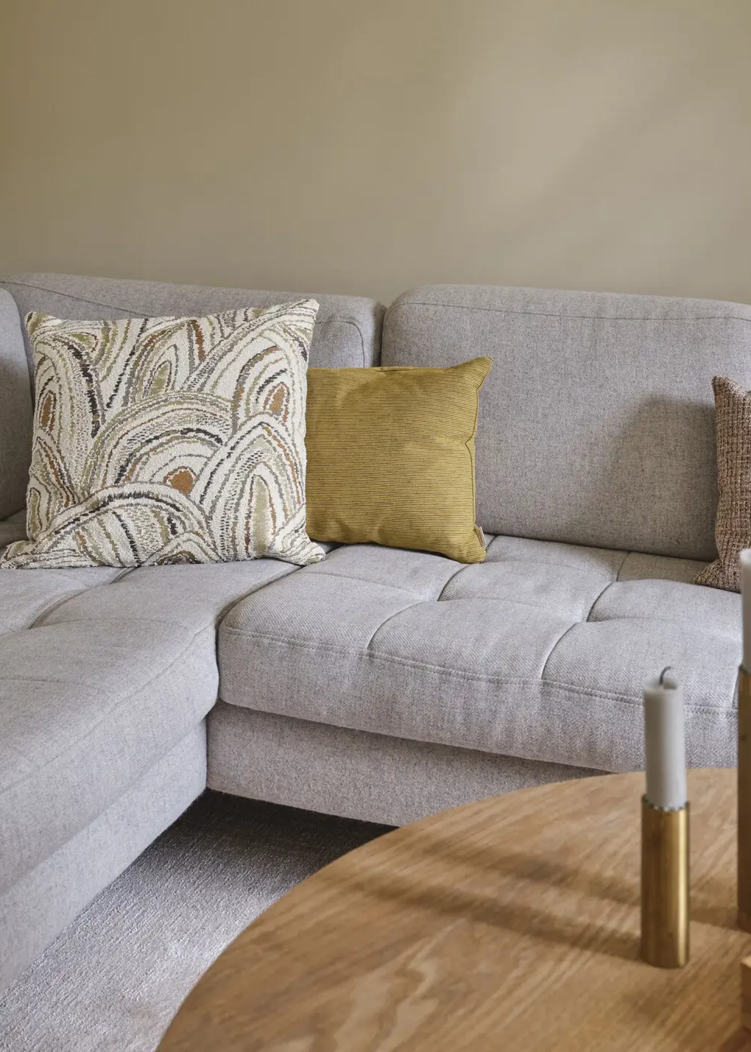 Det bølgelignende mønster i beige, brune og cremefarvede nuancer skaber dybde i indretningen. Hvis du søger et pudebetræk, der både er miljøvenligt og har et karakteristisk udtryk, er Shiki et godt valg til din sofa eller lænestol.