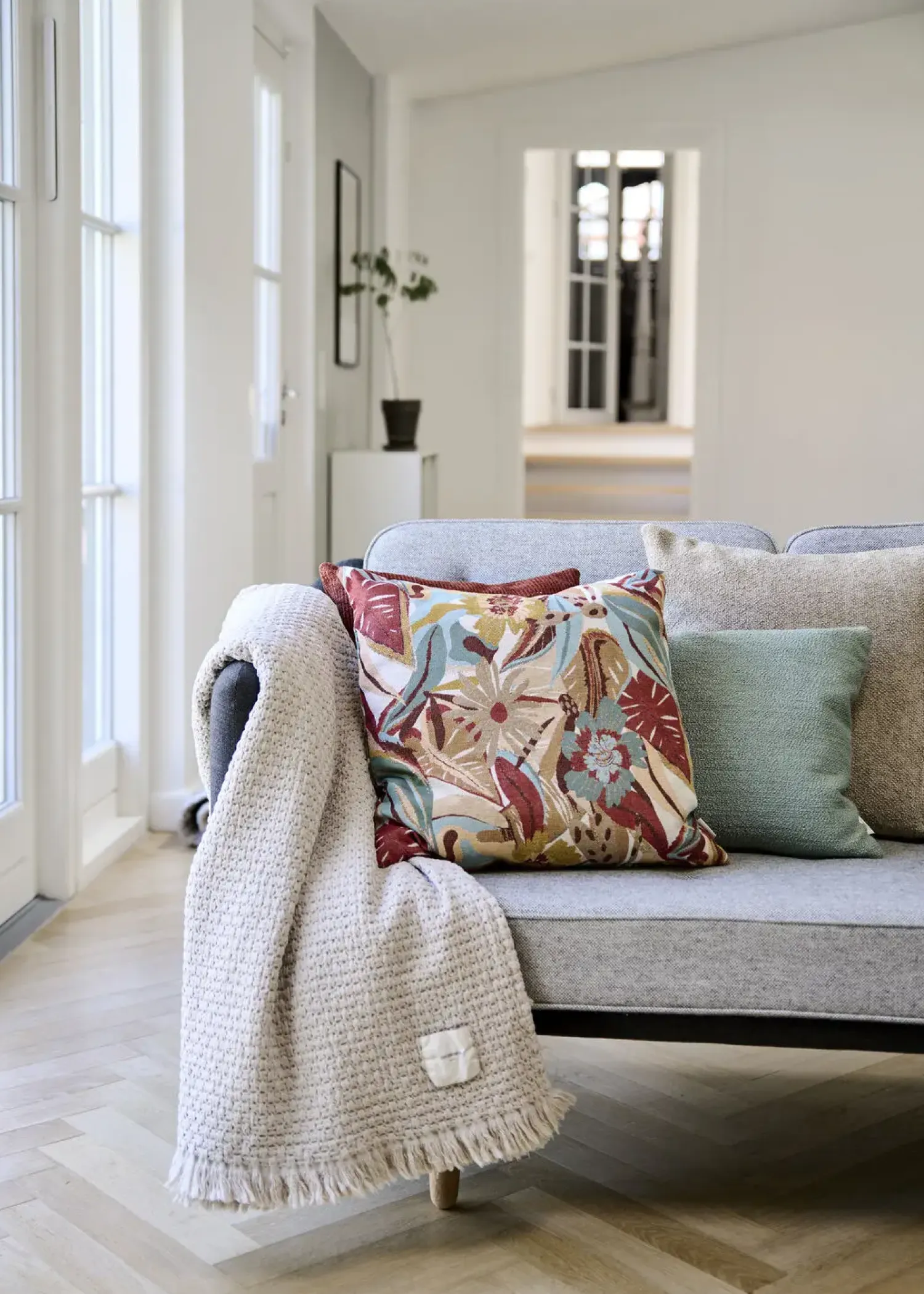 Ensfarvet Taffy pude i en enkel, luksuriøs bouclé, som evner at løfte rummets udtryk og skabe en særlig stemning. Taffy findes i flere størrelser og smukke farver.