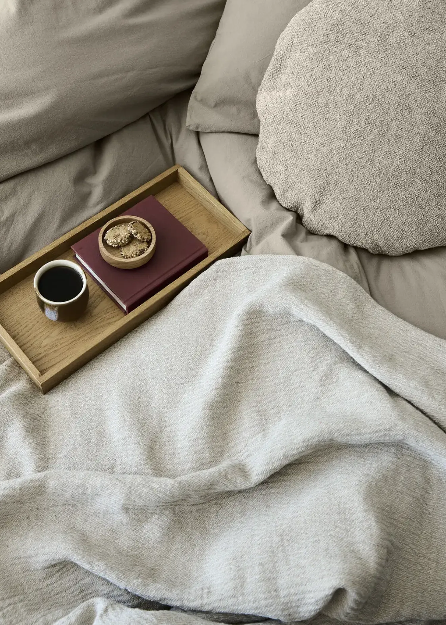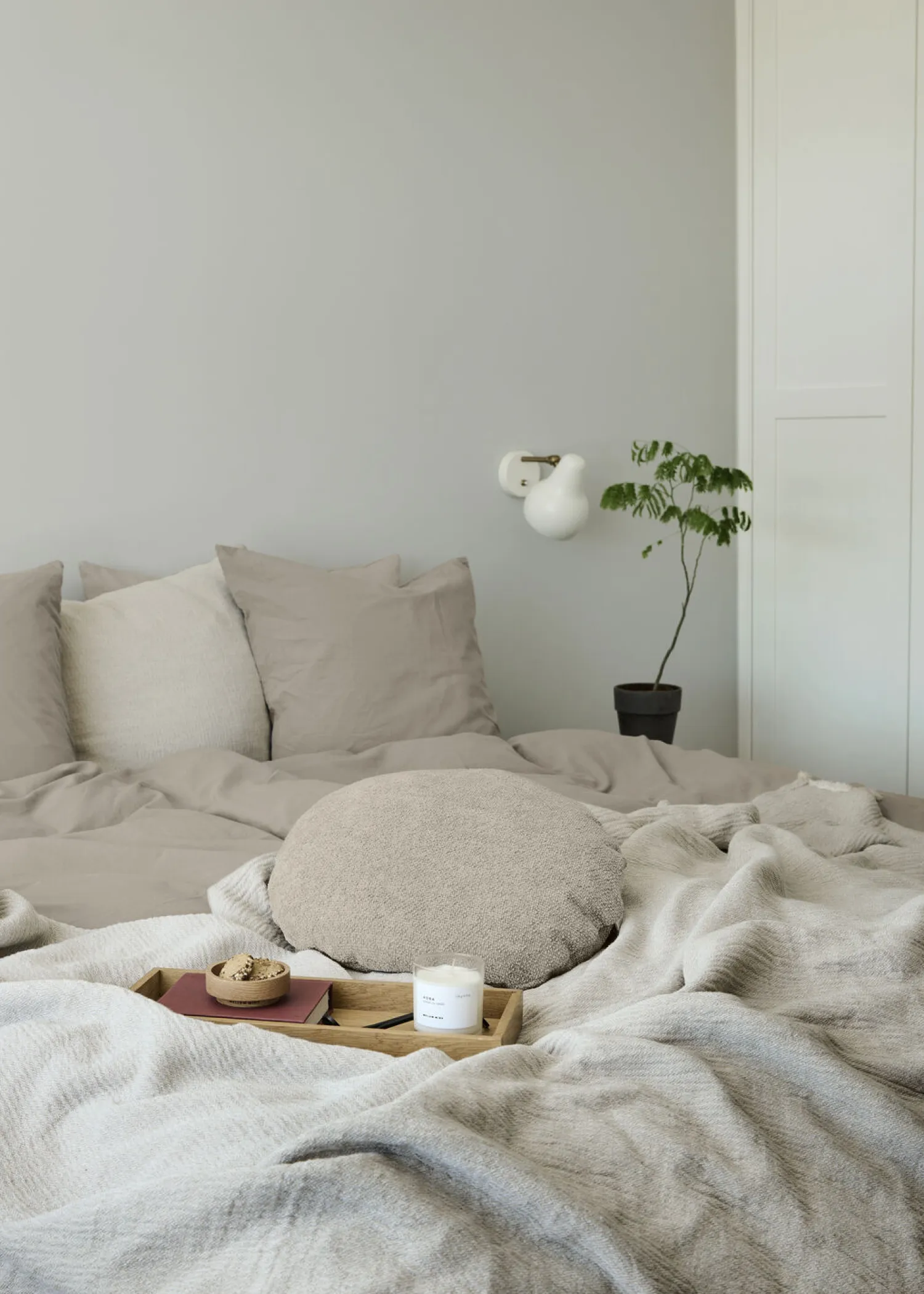 Rund Taffy pude i en enkel, luksuriøs bouclé, som evner at løfte rummets udtryk og skabe en særlig stemning. Taffy findes i flere størrelser og smukke farver.