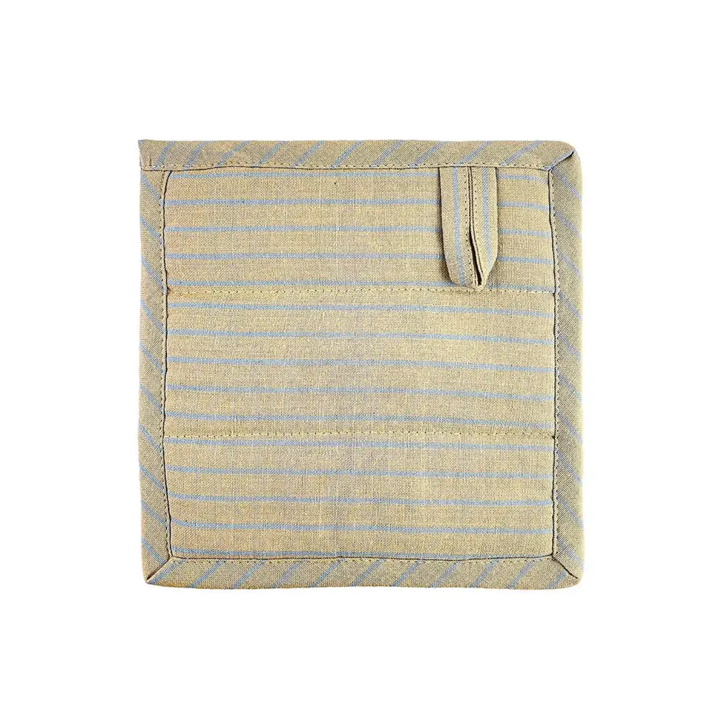 Med en praktisk hængeløkke på hver grydelap er det nemt at holde dem inden for rækkevidde. Det kvadratiske design giver god dækning, når du håndterer forskellige størrelser kogegrej. Farvekombinationen af sand og lyseblå tilfører et roligt og harmonisk præg til dit køkken. Brug dem som underlag for varme fade på spisebordet eller som beskyttelse, når du åbner tunge låg. Den klassiske stribede stil gør dem også ideelle som dekorative elementer, der kan hænges fremme og bidrage til køkkenets samlede udtryk.