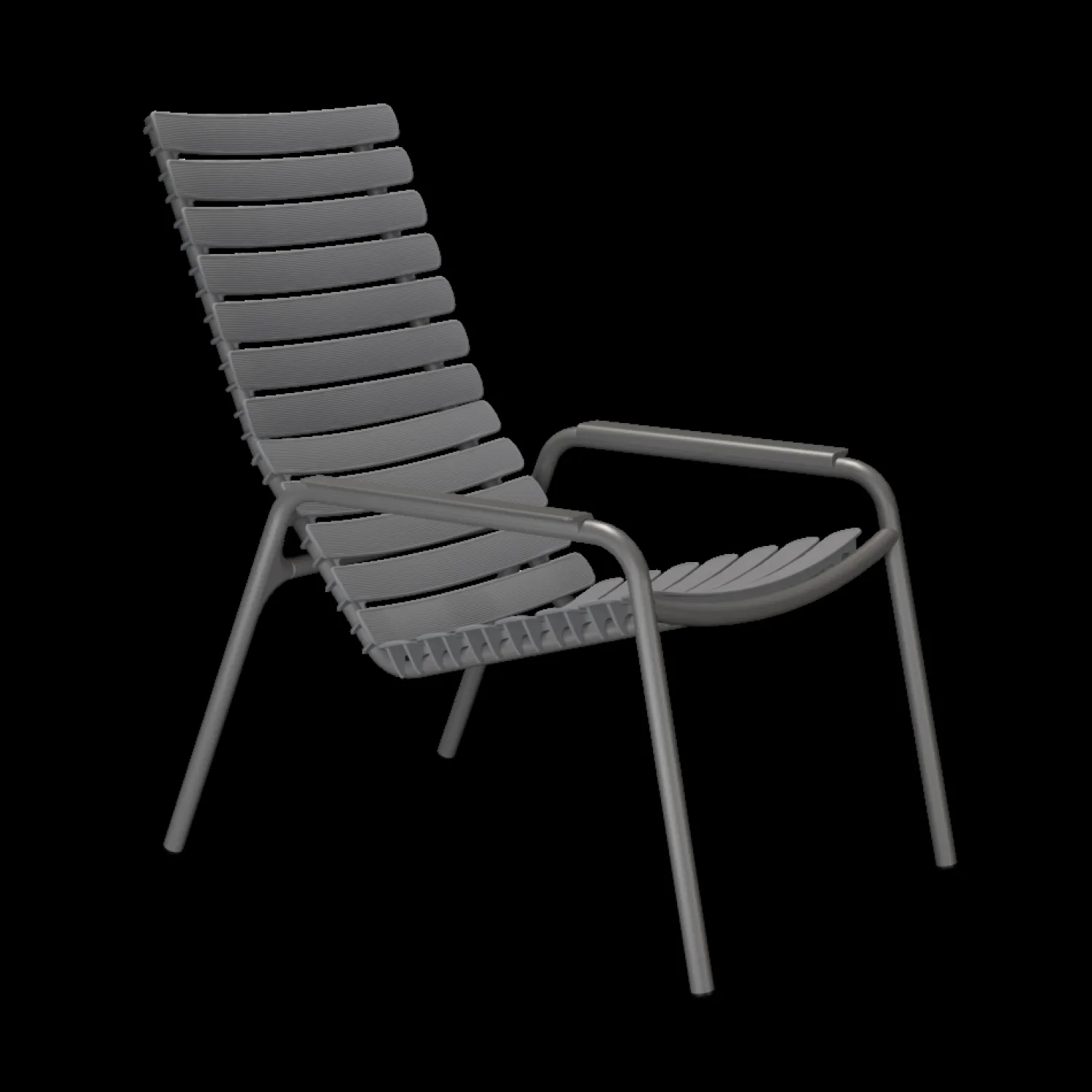 Danskproduceret hvilestol fremstillet af 97 % genbrugsplast fra danske husholdninger. Brede plastiklameller former sig efter kroppen, mens aluminiumsrammen giver holdbarhed og en lav vægt på 6,5 kg.