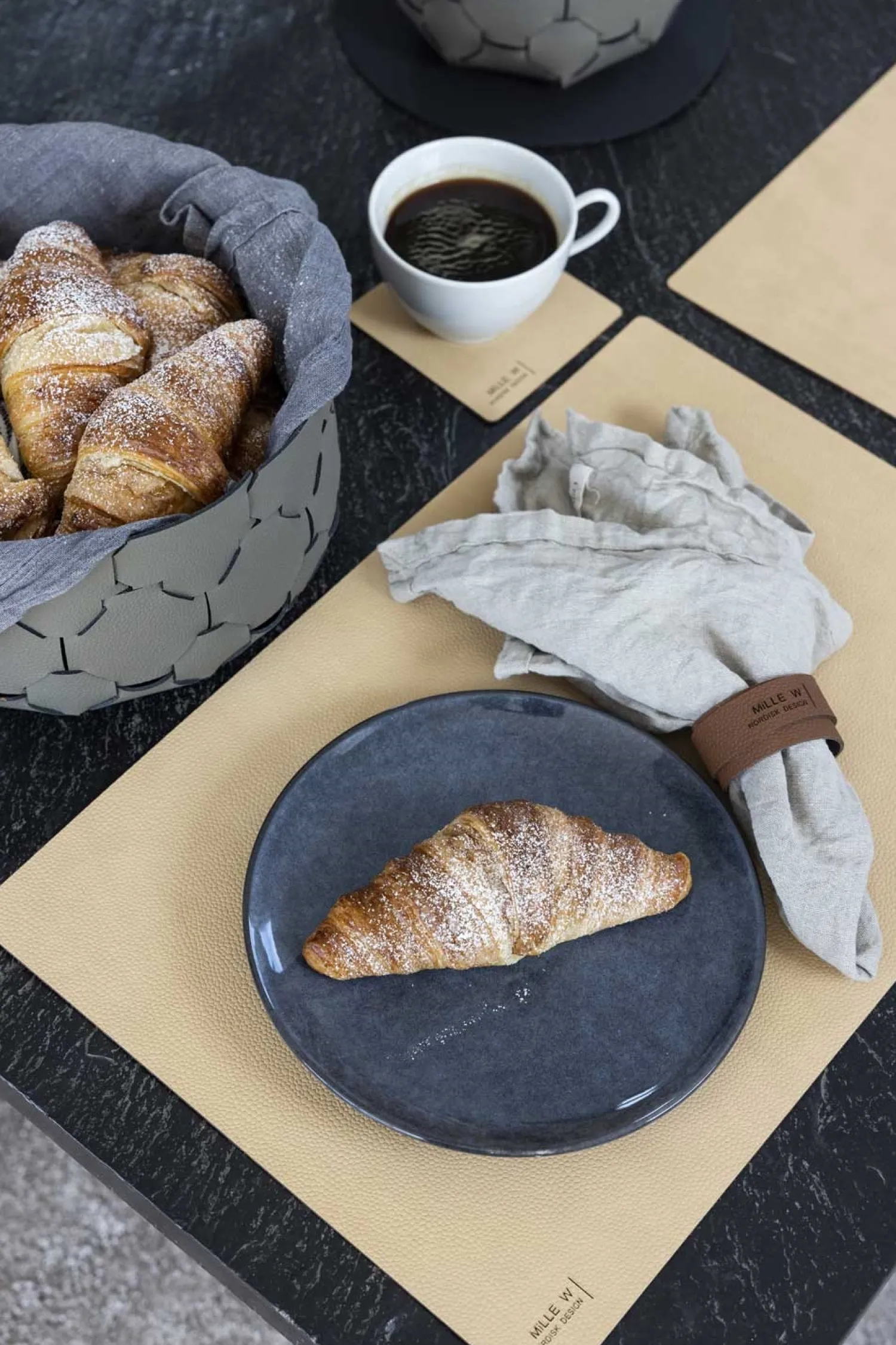 Vores fine drikkeunderlag er skabt med det formål at beskytte dit bord mod varme kopper, fugt og pletter, samtidig med at de tilføjer en aura af elegance til din borddækning. Den glatte overflade af læderet gør det let at rengøre, hvilket betyder, at du kan nyde dine måltider uden bekymring.