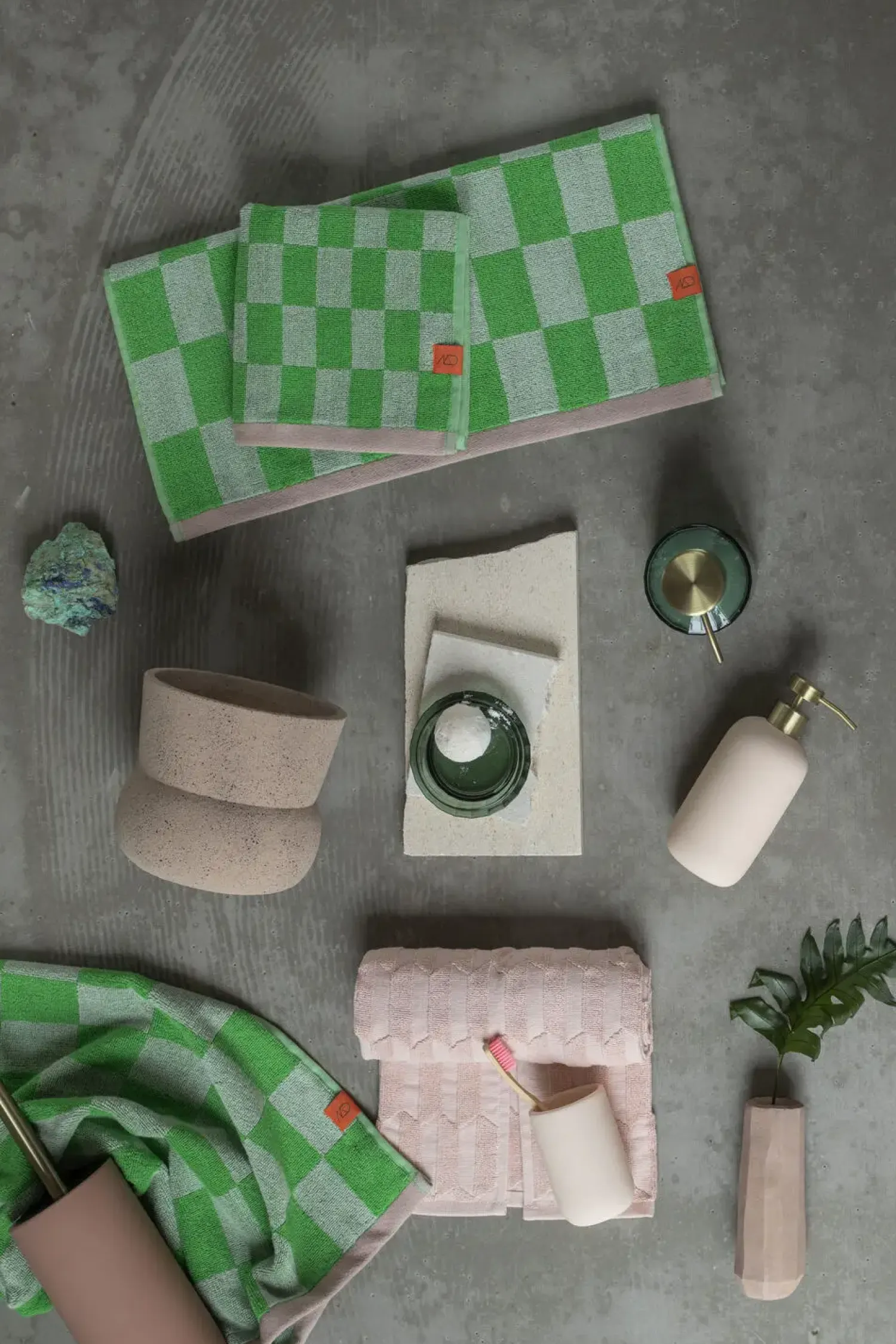 Mix og match RETRO håndklæderne med farvestrålende badtilbehør fra Mette Ditmer.