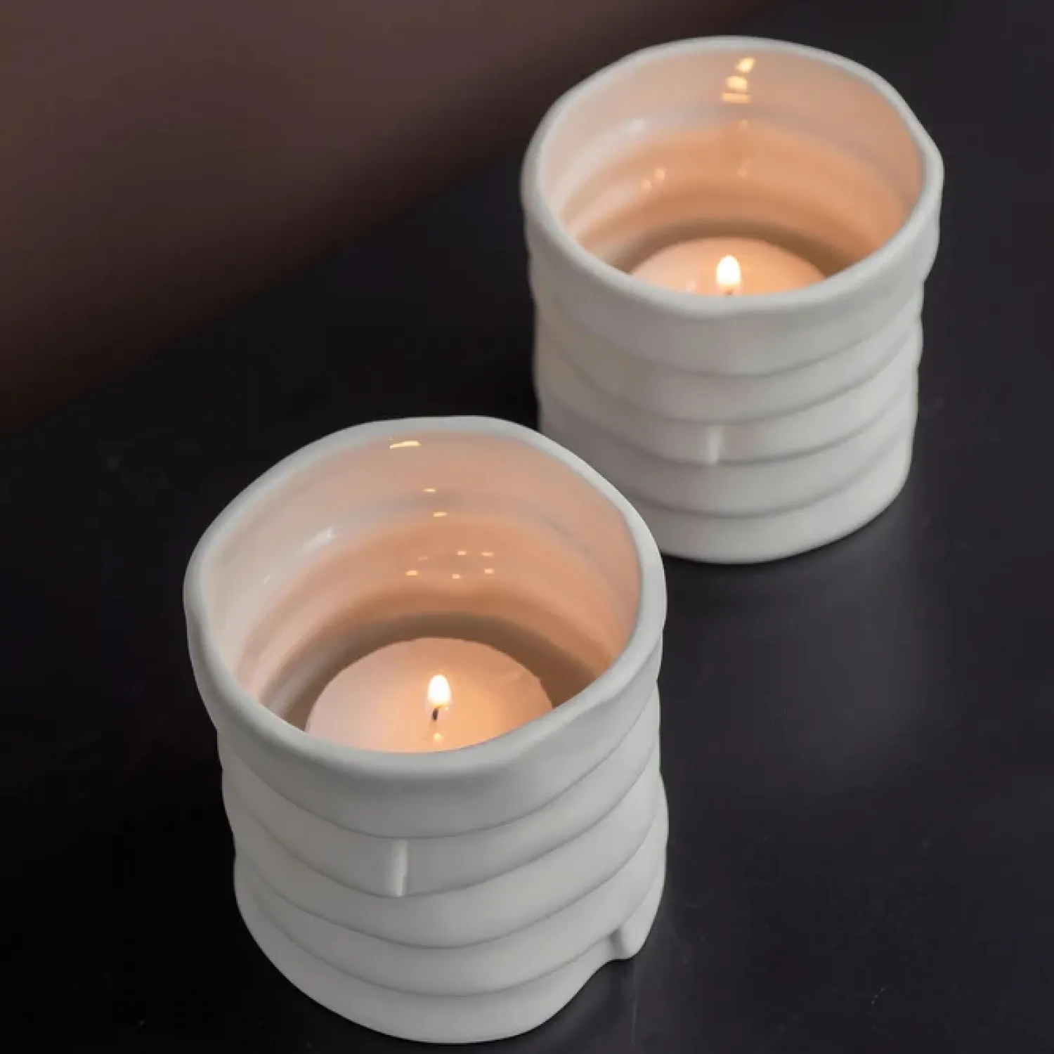 Sættet med to fyrfadsstager i RIBBON serien er idelle til middagsbordet eller vindueskarmen, hvor man kan se et lysskær gennem den tynde porcelæn. Mix med de øvrige produkter i serien.