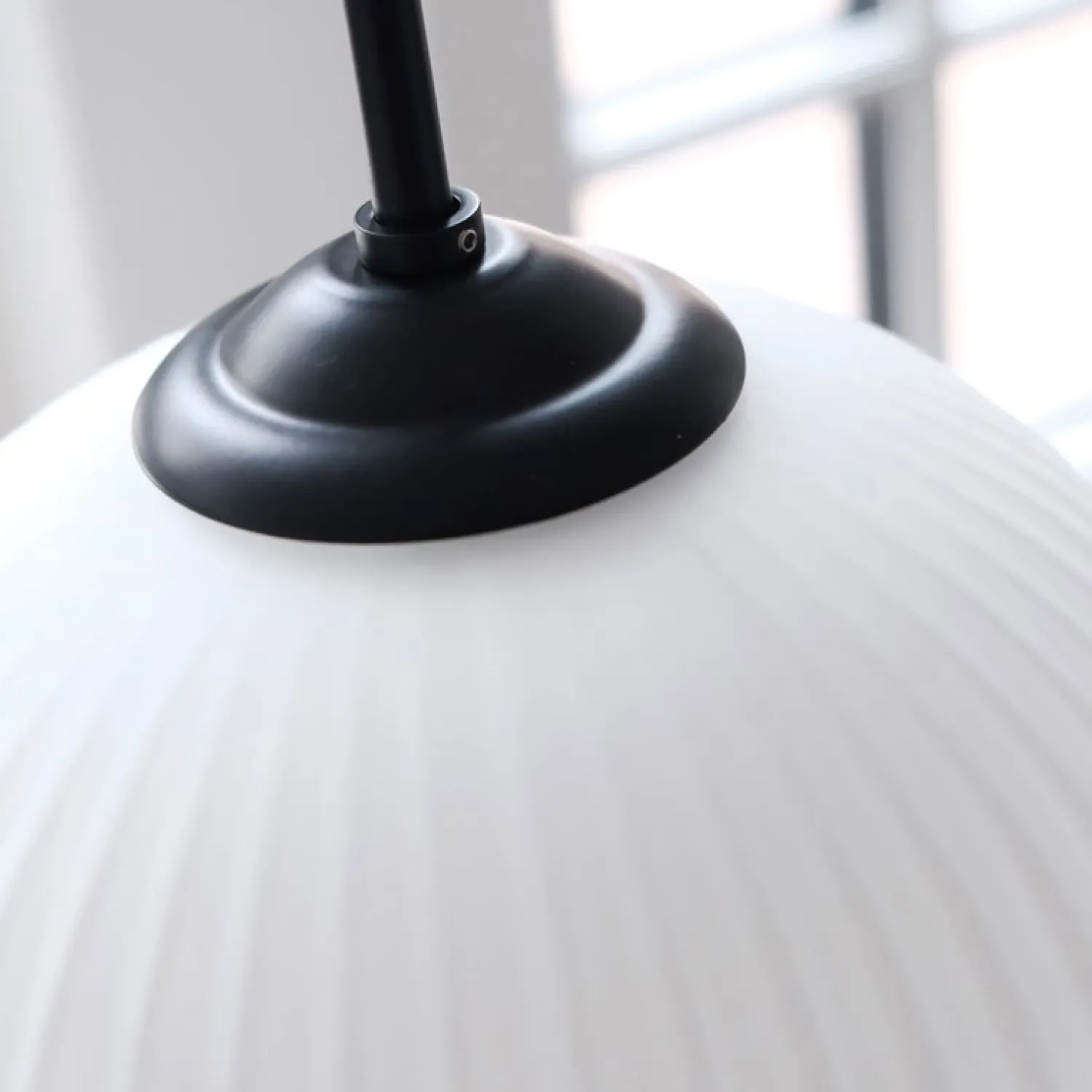 Riflet pendel Opal D14 har en smuk lampeskærm, lavet i opalglas med sort base. Opalglasset med de lodrette riller skaber en varm og hyggelig belysning i rummet. Det klassiske design gør, at lampen passer godt ind i de fleste hjem. Ideel til at hænge over spisebordet, i hallen eller i køkkenet.
