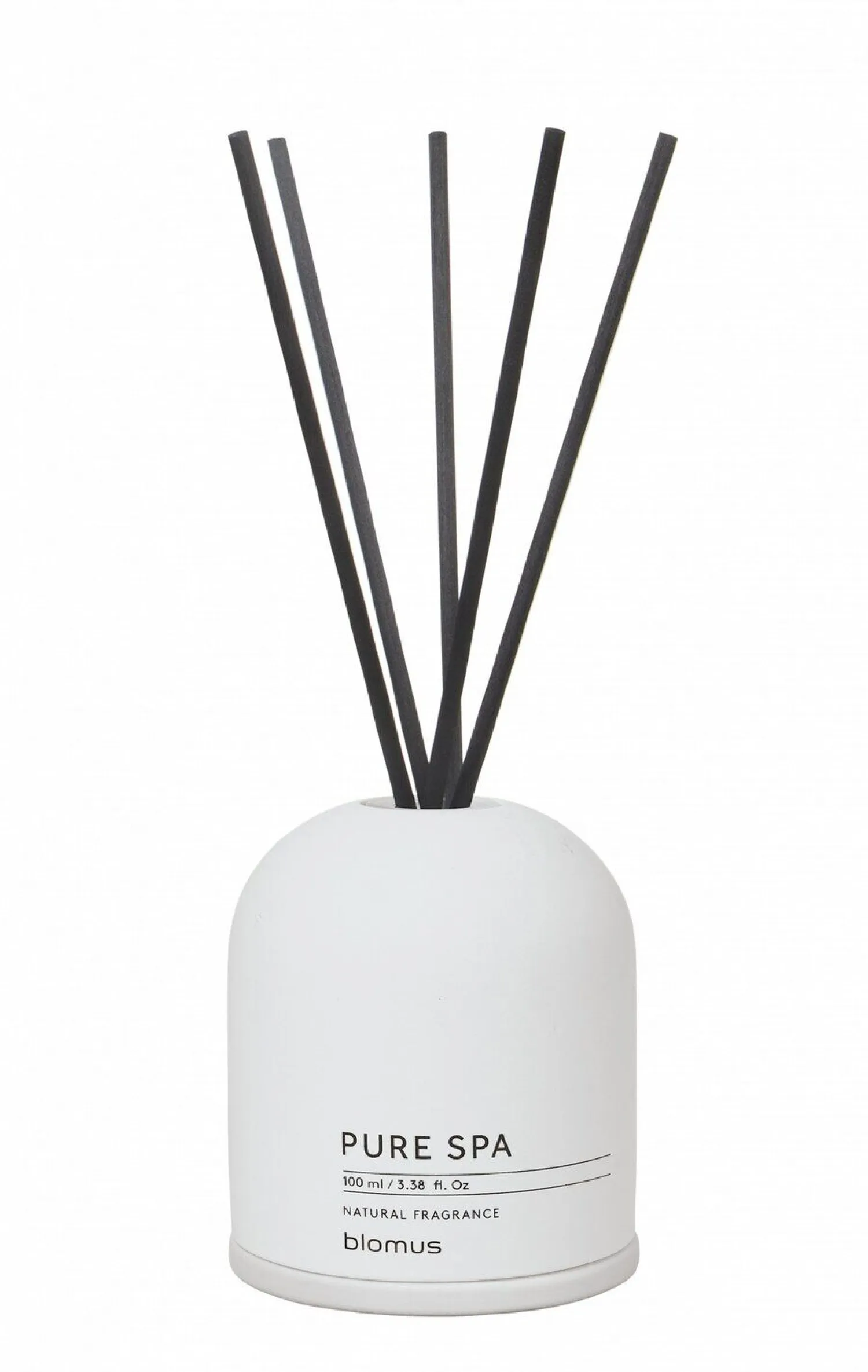 For et dejligt duftende hjem: FRAGA værelsesduftsættet spreder den friske duft af “fransk bomuld” i dit hjem – en sammensætning af blomsteraromaer med en sød urtenote. Den flydende duft opbevares i en farvet glasbeholder, skjult under et matchende betonlåg. Det karakteristiske betonlook i farven “Lily White” giver diffuseren et unikt præg. Duftens intensitet kan justeres ved hjælp af de fem pinde. FRAGA rumdiffusoren fås i mange forskellige dufte, og hver duft inkluderer også en 100 ml refill, inklusive pinde.