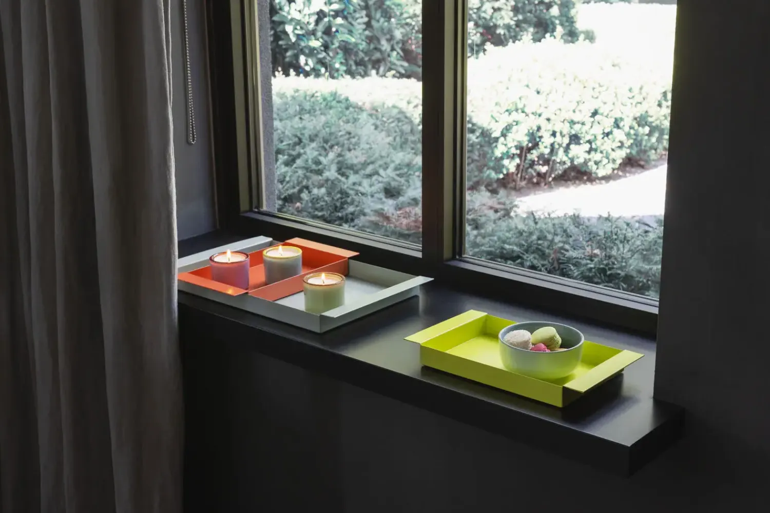 Ryo-bakkerne er designet til at imødekomme forskellige indretningsbehov. De kan bruges alene som serveringsbakker eller som dekorative elementer på borde og hylder. For at skabe varierede displays kan du kombinere forskellige størrelser og farver af Ryo-bakkerne. Prøv at placere en mindre bakke i en større for at opnå en lagdelt effekt. De fire gummibeskyttelsespunkter på undersiden sikrer stabilitet og beskytter dine overflader mod ridser.