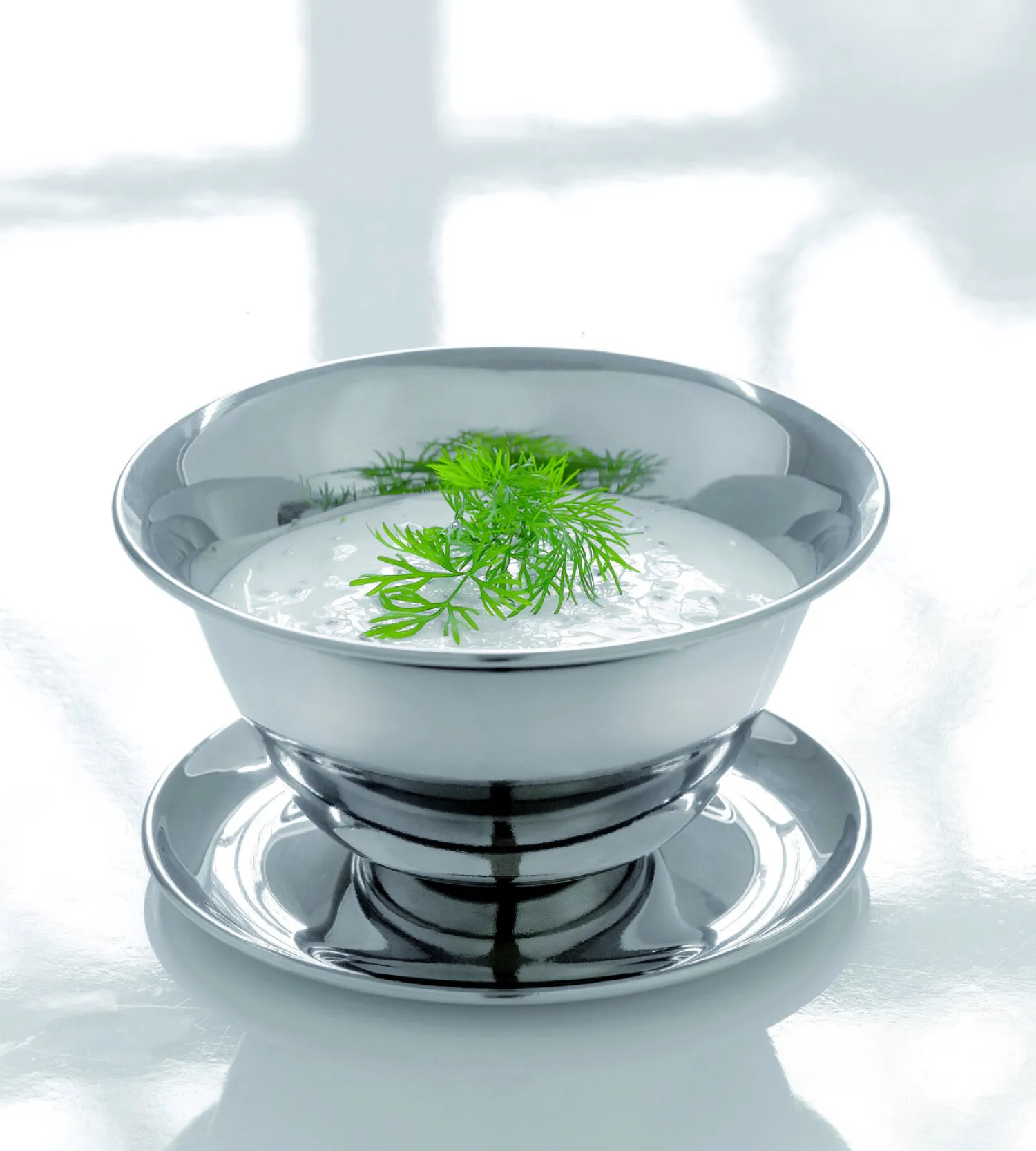 Med den runde form og 0,50 liters kapacitet er skålen ideel til forskellige saucer og dressinger. Undertallerkenen giver stabilitet og forhindrer spild på bordet. Du kan bruge skålen til både varme og kolde saucer uden bekymringer.