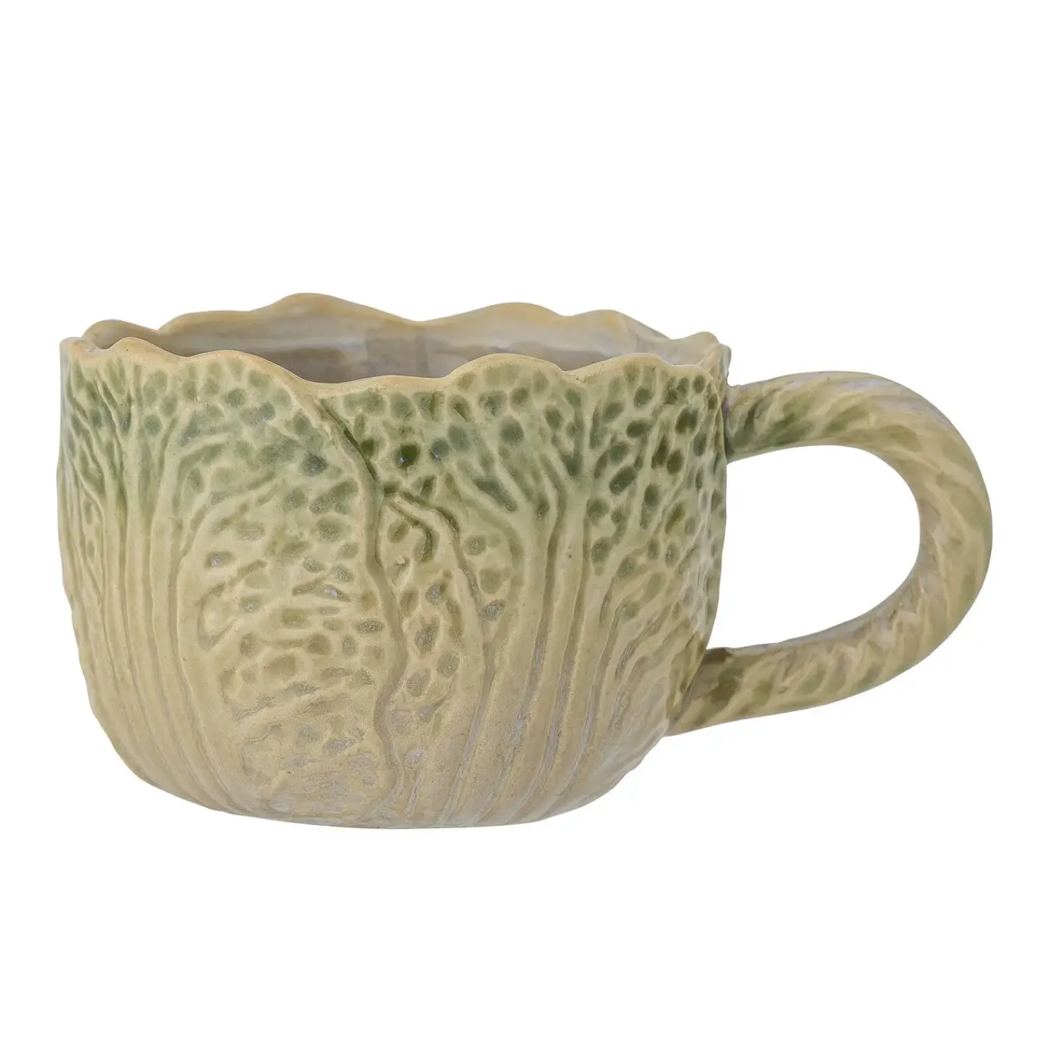 Savanna Cup fra Bloomingville vil bringe haven til dit bord. Den har originale bladformer i naturligt og grønt stentøj og ujævn kant for effekt. Koppen er en perfekt tilføjelse til dit køkken, hvis du leder efter noget, der tilføjer friskhed til dit bord og er flot.