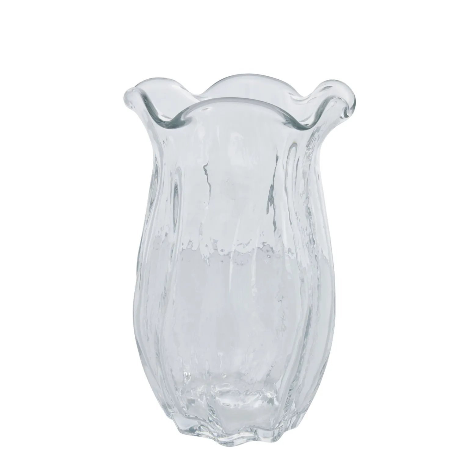 Smuk Scarlett vase i farven transparent.Denne charmerende og mundblæste Scarlett vase er designet til at fylde dit rum med elegance og charme. Vasen er lavet af gennemfarvet glas, og lover holdbarhed og et tidløs udtryk.Med sine bløde kurver og subtile silhuet fanger Scarlett vasen essens af femininitet. Dens smukke silhuet minder om elegance og femininitet, hvilket bringer et feminint udtryk til ethvert rum.Lad Scarlett vasen give dine blomsterarrangementer den luksuriøse præsentation, de fortjener.