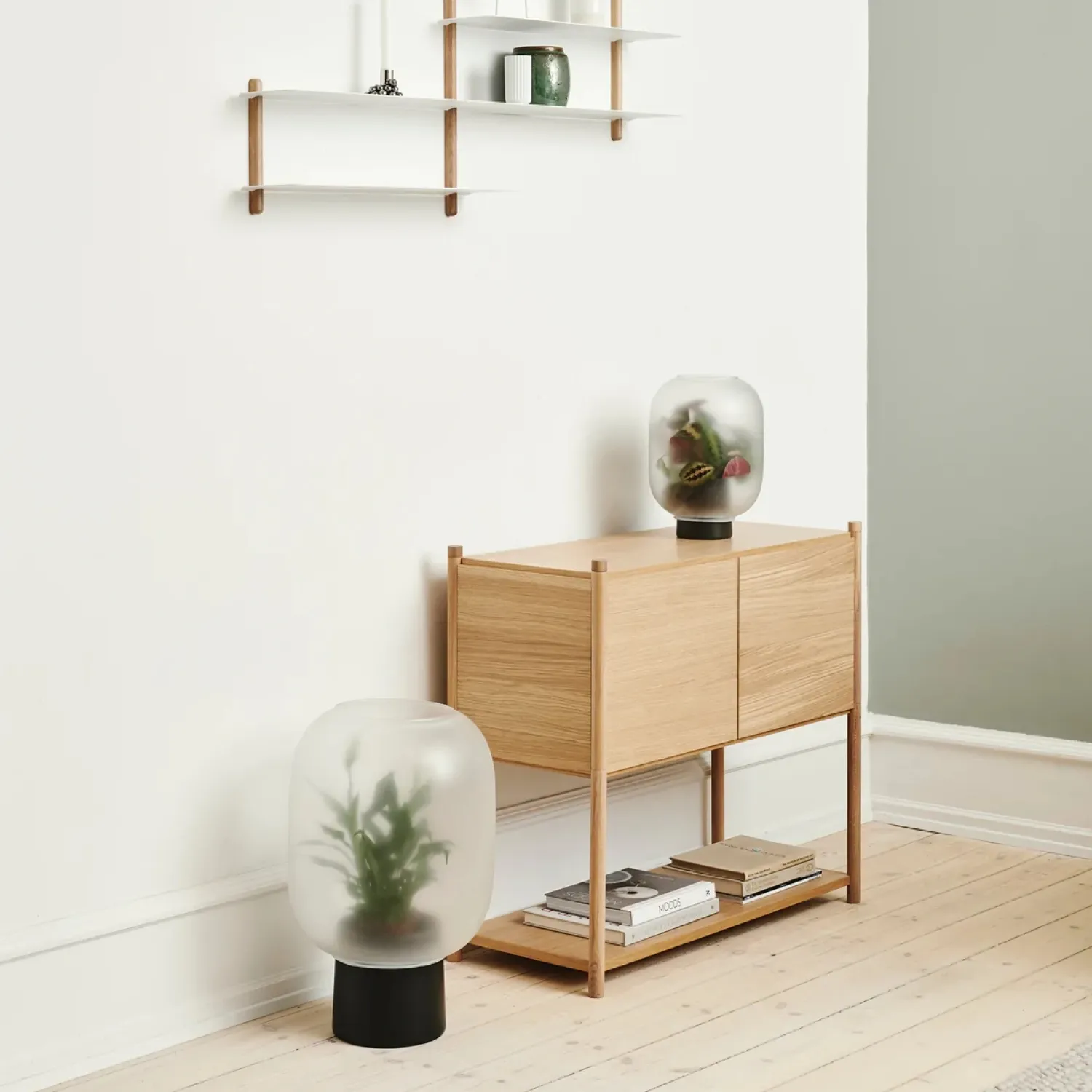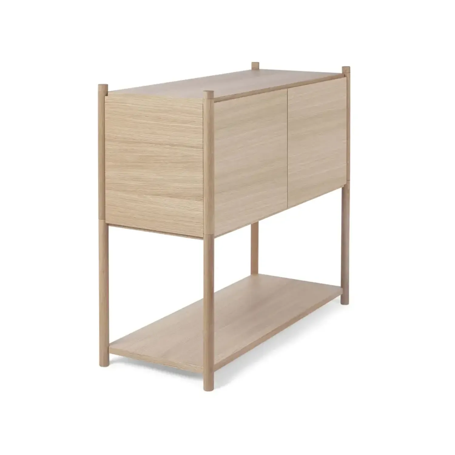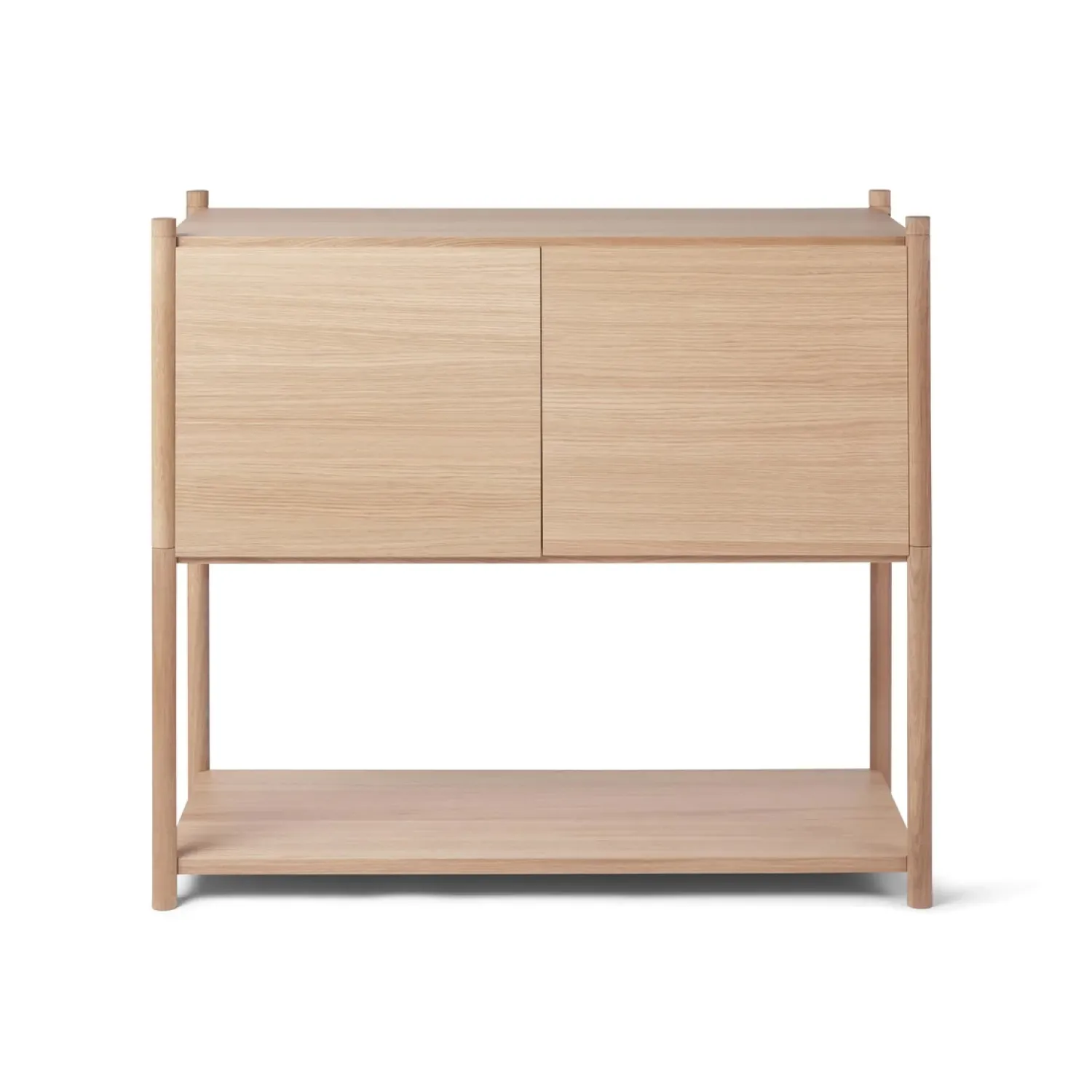 Super fin reol fra Gejst. Sceene reol c er et modulopbygget reolsystem, som giver en mulighed for at skabe sin egen personlige reol. Du kan være kreativ og skabe en opbevarings løsning, der passer præcis til de behov du har. Reolen er lavet således, at det øverste modul har fået tilføjet to sidepaneler, et bagpanel og frontlågerne kan åbnes op.