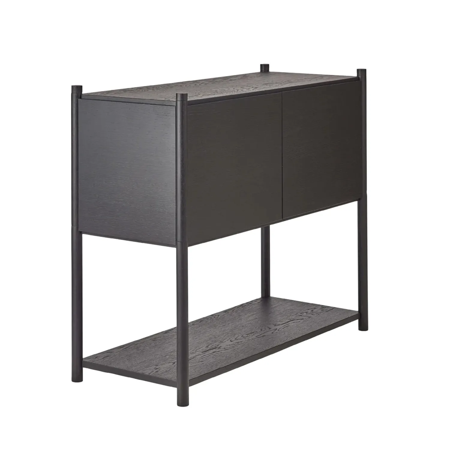 Super fin reol fra Gejst. Sceene reol c er et modulopbygget reolsystem, som giver en mulighed for at skabe sin egen personlige reol. Du kan være kreativ og skabe en opbevarings løsning, der passer præcis til de behov du har. Reolen er lavet således, at det øverste modul har fået tilføjet to sidepaneler, et bagpanel og frontlågerne kan åbnes op.