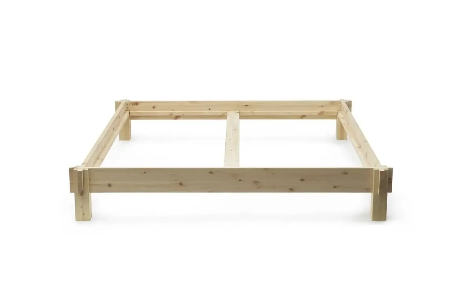 Denne sengeramme er fremstillet af 100% massive fyrretræplanker og beskyttet med en klar, mat UV-lak. Med sine 180 x 200 cm passer den til standardmadrasser til dobbeltsenge, mens den beskedne højde på 33 cm giver nem adgang.