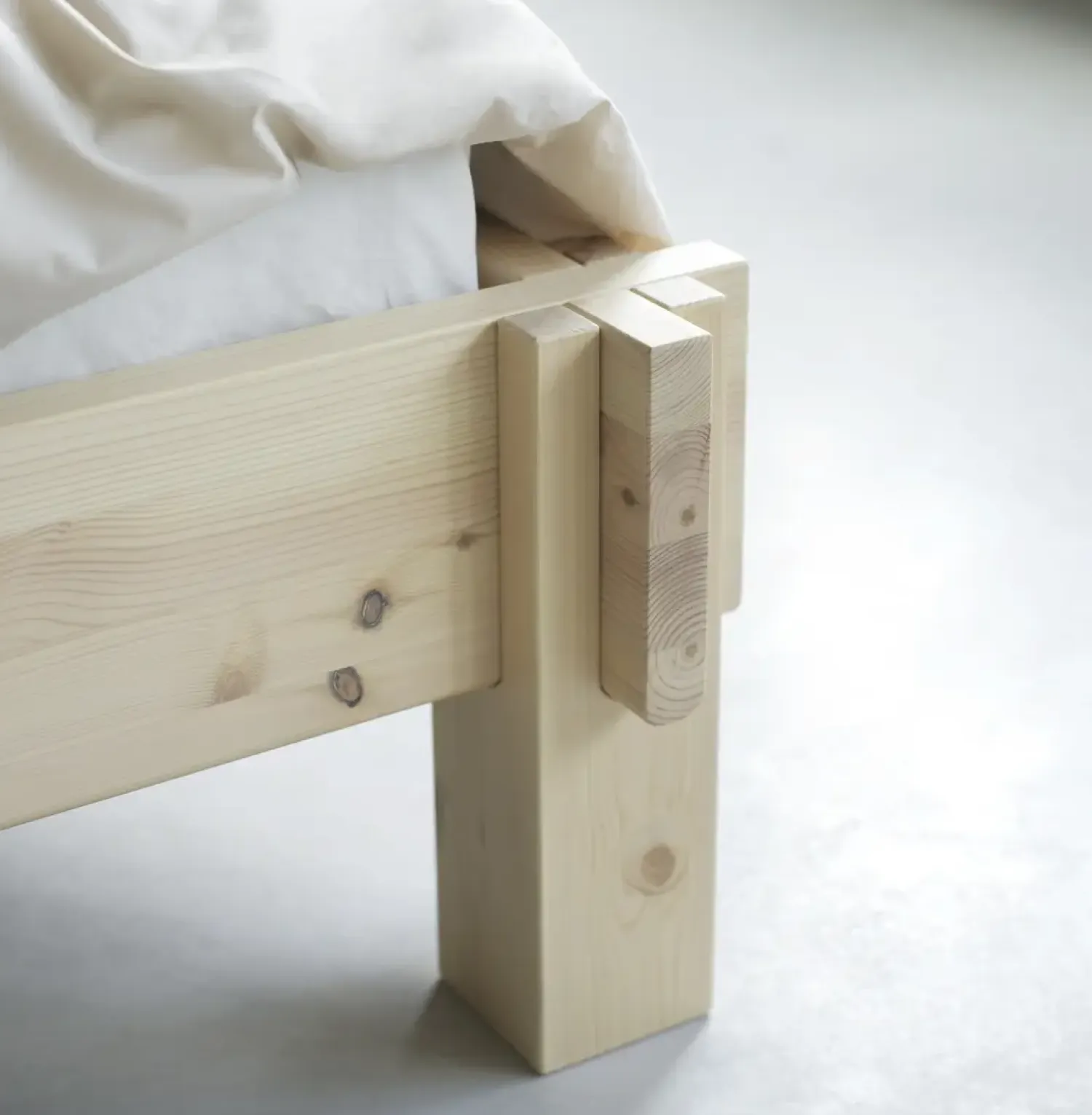 Den solide konstruktion i massivt fyrretræ sikrer stabilitet og holdbarhed i din seng. Træet er omhyggeligt udvalgt og behandlet med UV-beskyttende lak, som bevarer det naturlige udseende og beskytter mod daglig slitage og sollys.
