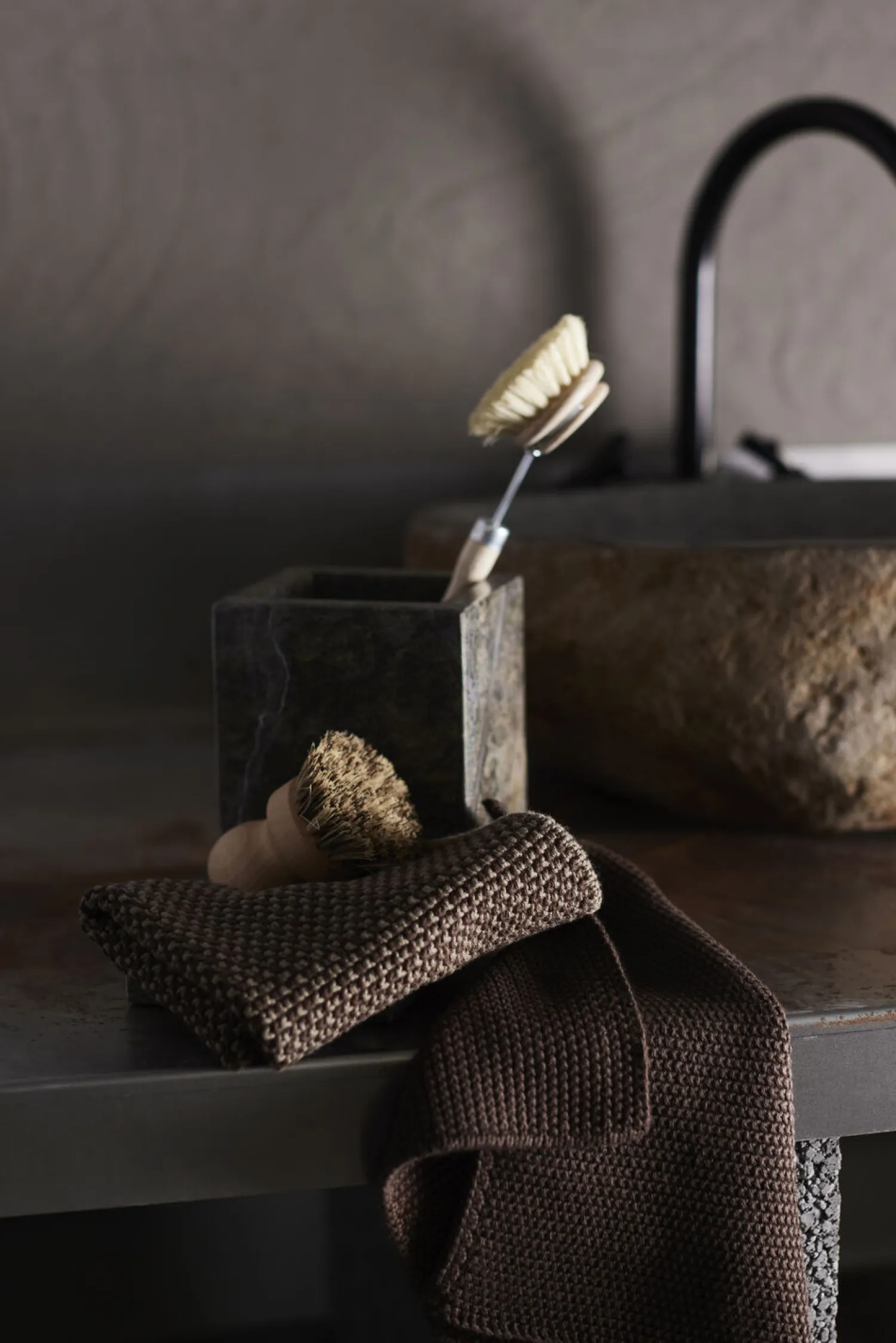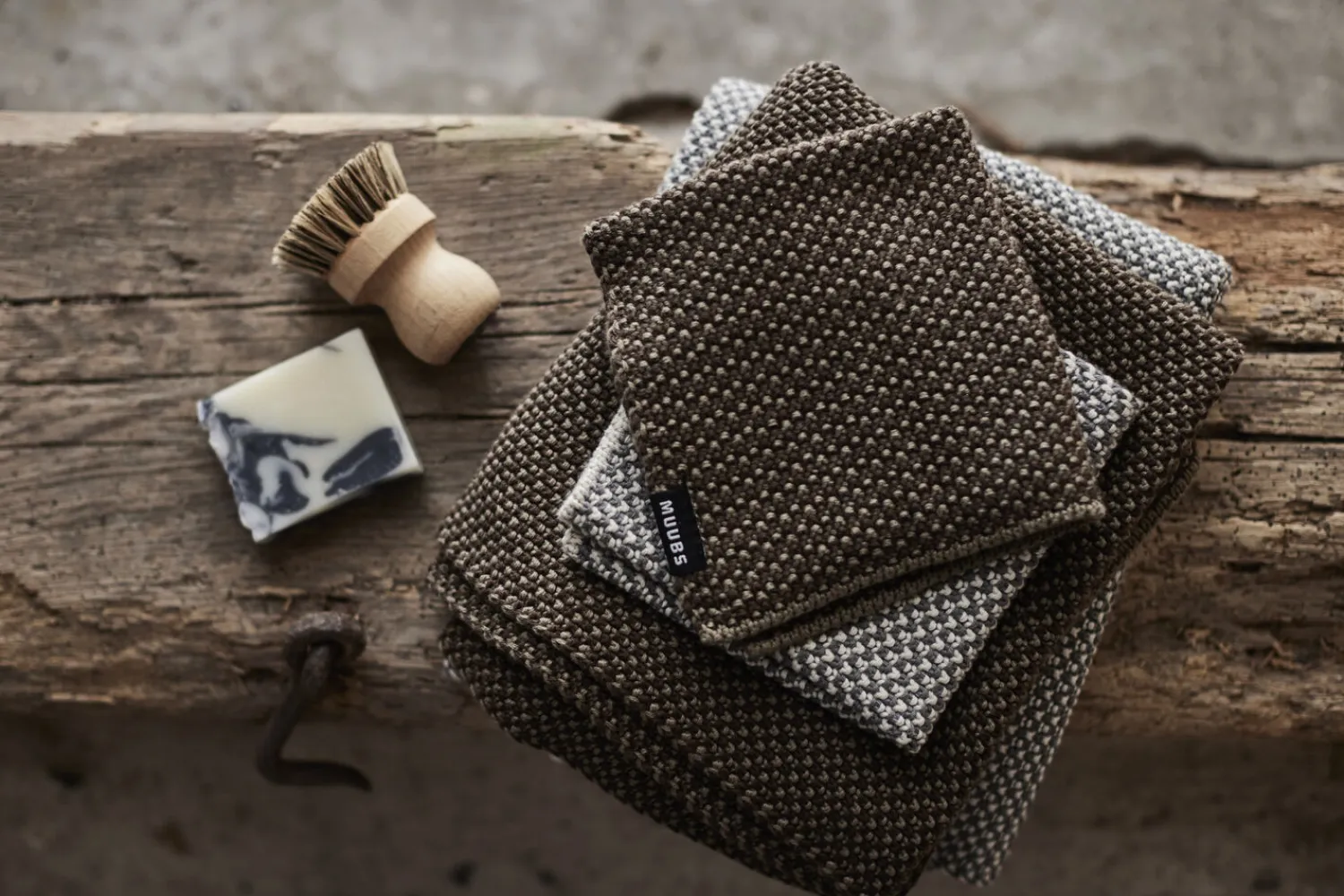 Sentaku er en serie af køkkentekstiler, der fejrer æstetik og funktionalitet og har sit navn fra det japanske ord for at ”vaske” – en daglig påmindelse om ro og harmoniske omgivelser, der starter med rene overflader.De elegante og dekorative Sentaku karklude er lavet af 100% økologisk bomuld i en blød, strikket kvalitet, uden mikrofibre eller plast, hvilket gør dem til et mere miljøvenligt valg for dit køkken.Sentaku karkludene er et perfekt supplement til dine køkkentekstiler, og den melerede strikeffekt, tilfører et stilfuldt præg, der passer perfekt ind i ethvert køkken. Brug dem sammen med køkkenhåndklæderne fra samme serie, for at skabe harmoni i køkkenindretningen. Karkludene sælges i sæt af 2 stk. Tip: Det anbefales at udskifte dine karklude dagligt for optimal hygiejne.Plejeanvisning: Karkluden kan maskinvaskes ved 60 grader. Vaskes med samme farver. Må IKKE tørretumbles. Størrelse: 27×27 cmMateriale: 100% økologisk bomuld.Design: Kira Usbeck