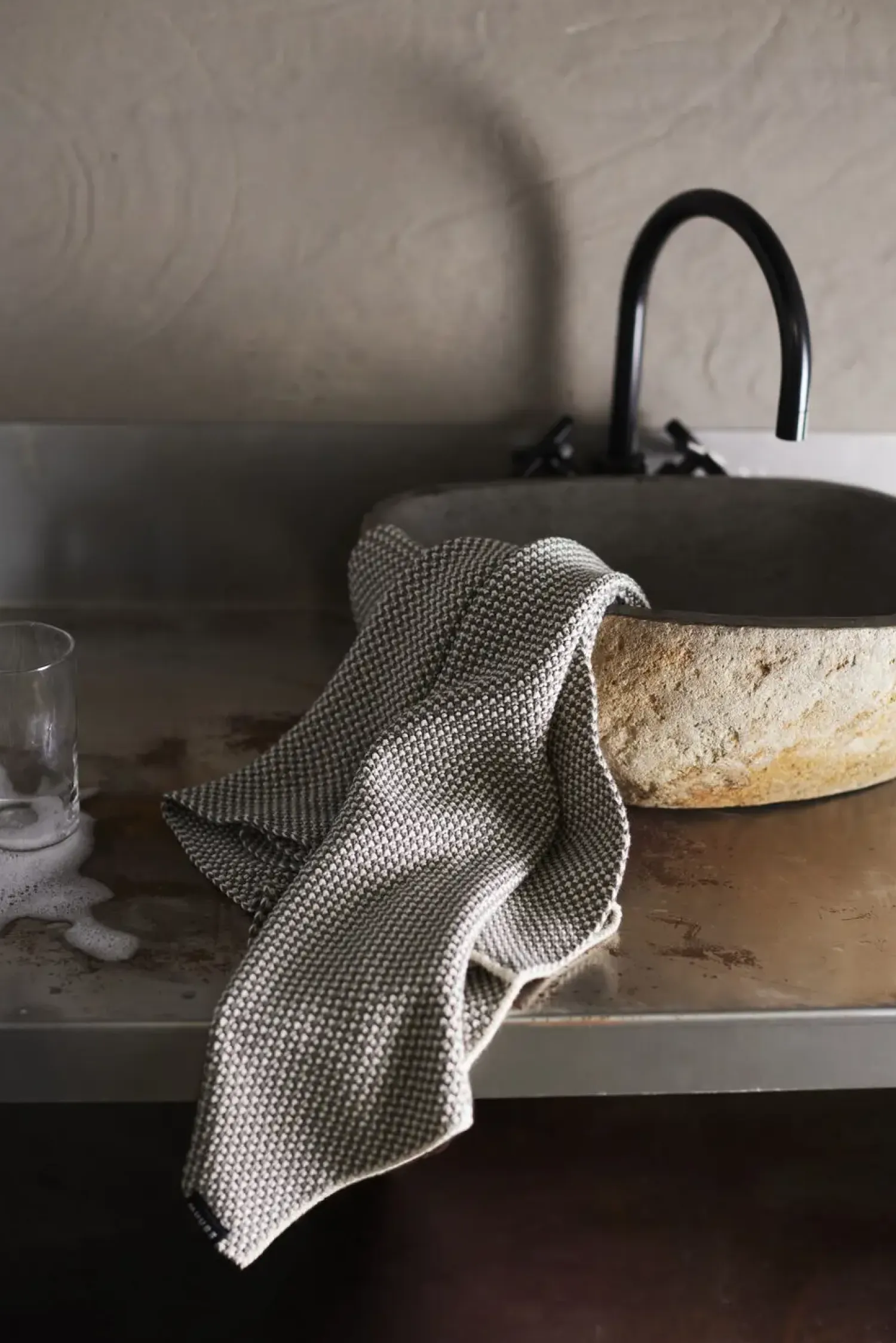 Sentaku er en serie af køkkentekstiler, der fejrer æstetik og funktionalitet og har sit navn fra det japanske ord for at ”vaske” – en daglig påmindelse om ro og harmoniske omgivelser, der starter med rene overflader.De elegante og dekorative Sentaku køkkenhåndklæder er lavet af 100% økologisk bomuld i en blød, strikket kvalitet. Fordelen ved et separat køkkenhåndklæde er, at det reducerer spredning af bakterier fra viskestykker.Sentaku køkkenhåndklædet er et perfekt supplement til dine køkkentekstiler, og den melerede strikeffekt, tilfører et stilfuldt præg, der passer perfekt ind i ethvert køkken. Brug dem sammen med karkludene fra samme serie, for at skabe harmoni i køkkenindretningen. Køkkenhåndklæderne fås enkeltvis. Plejeanvisning: Køkkenhåndklædet kan maskinvaskes ved 60 grader. Vaskes med samme farver. Må IKKE tørretumbles. Størrelse: 50×80 cmMateriale: 100% økologisk bomuldDesign: Kira Usbeck